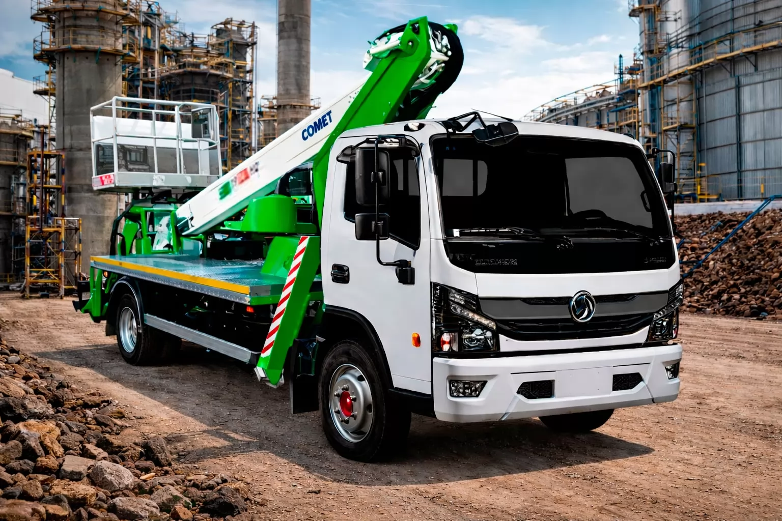 Модель COMET 19 | 2 | 14 HQ – телескопический автогидроподъемник, устанавливаемый на грузовиках с минимальной массой от 3,5 т. Максимальная рабочая высота 18 м с максимальным вылетом 9(10,5, 14) м. Безопасная рабочая нагрузка 250(200, 80) кг. Вращение надземной части составляет 360 градусов.