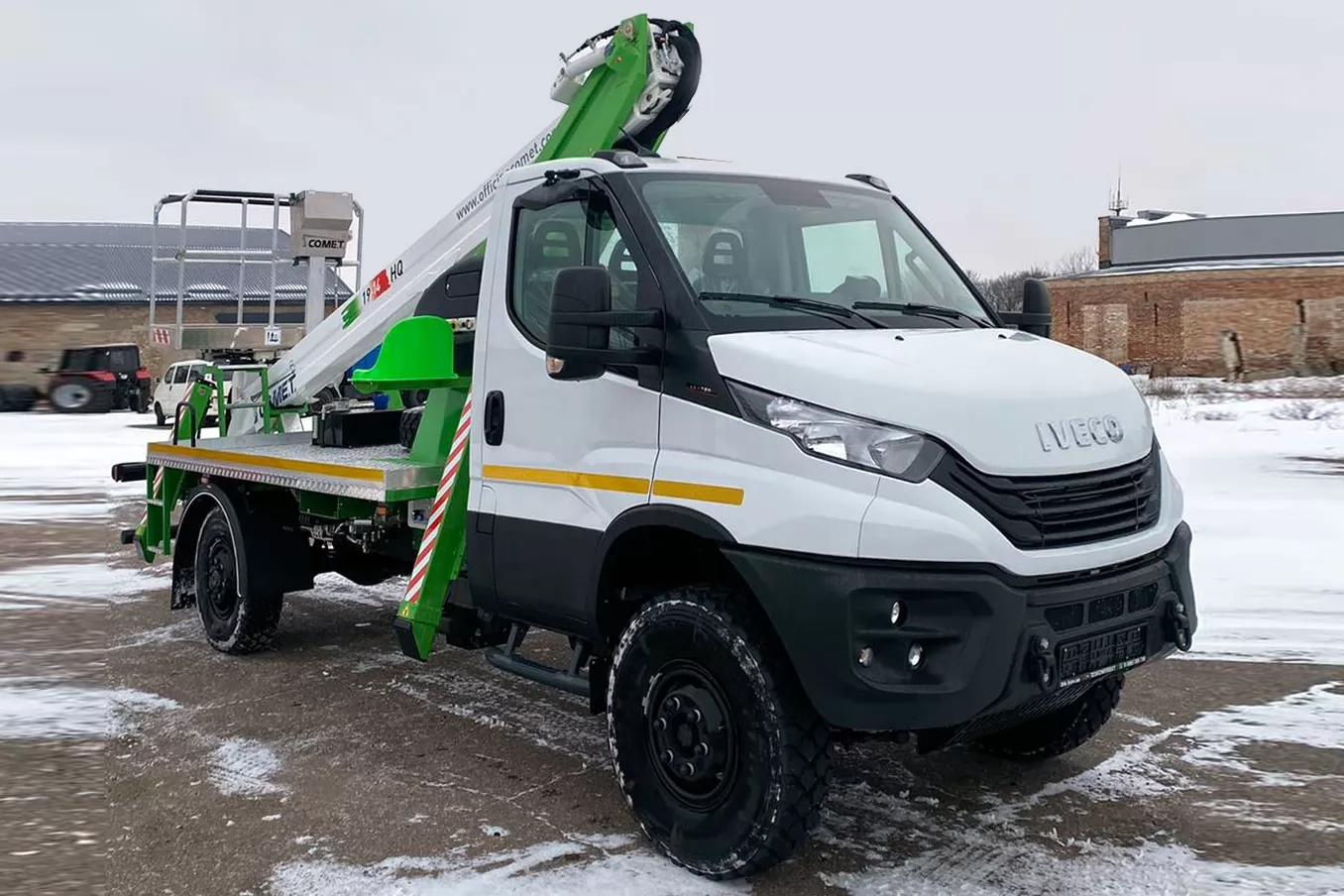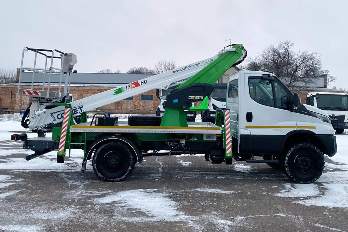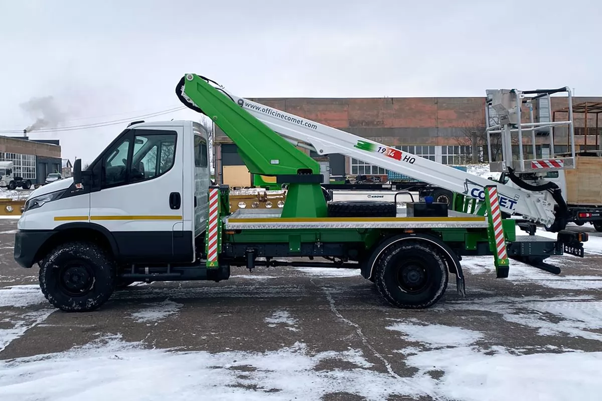 Модель COMET 19 | 2 | 14 HQ – телескопический автогидроподъемник, устанавливаемый на грузовиках с минимальной массой от 3,5 т. Максимальная рабочая высота 18 м с максимальным вылетом 12 м. Безопасная рабочая нагрузка 250 кг. Вращение надземной части составляет 360 градусов.