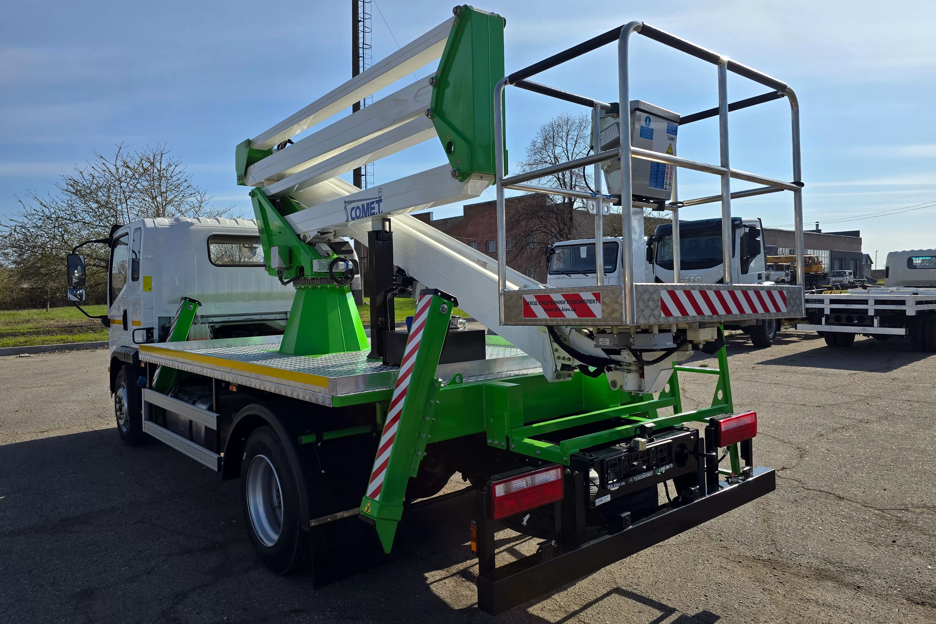 Модель Comet 21 | 2 | 9 HQ на DONGFENG CA9C –комбинированный автогидроподъемник, устанавливаемый на грузовиках с минимальной массой от 3,5 т. Максимальная рабочая высота 20,5 м с максимальным вылетом 9 м. Безопасная рабочая нагрузка 260 кг. Вращение надземной части составляет 360 градусов. Двойной пантограф.