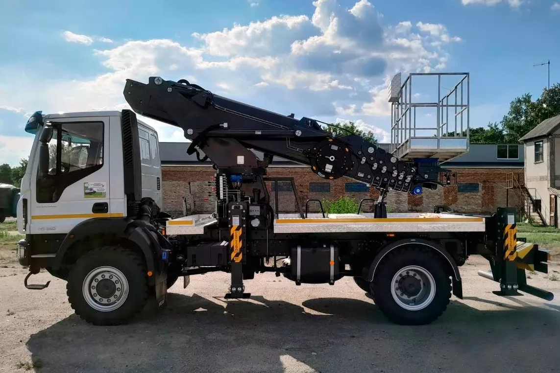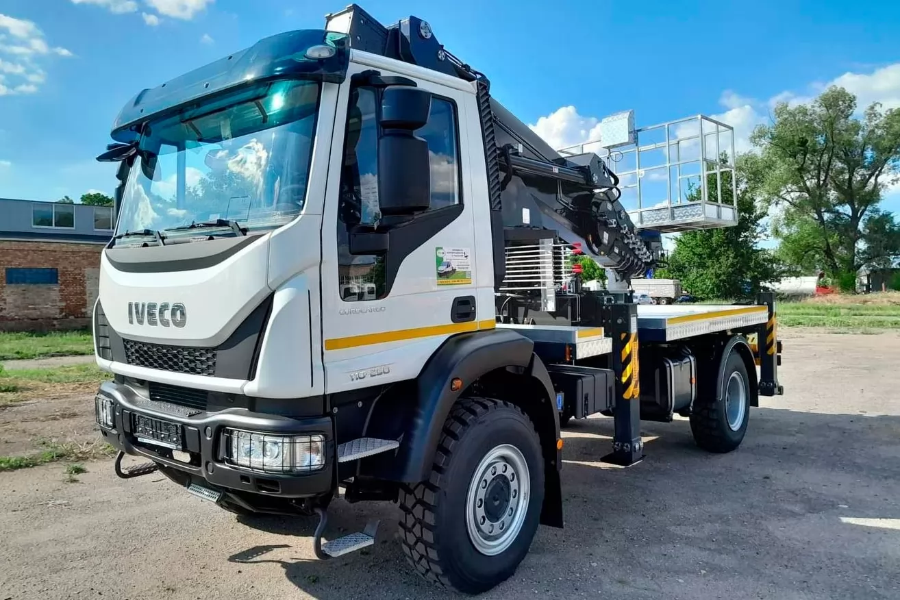 Автогидроподъемник DASAN CT290EX на IVECO Eurocargo ML110 4x4 – удачное конструктивное решение от южнокорейского производителя АГП DASAN для выполнения высотных работ теми предприятиями, кому нужно купить автовышку с максимальной рабочей высотой около 29 м на базе полноприводного грузового шасси с колесной формулой 4х4 для оперативной доставки рабочих по бездорожью на место выполнения работ, которое к тому же может иметь сложный рельеф.