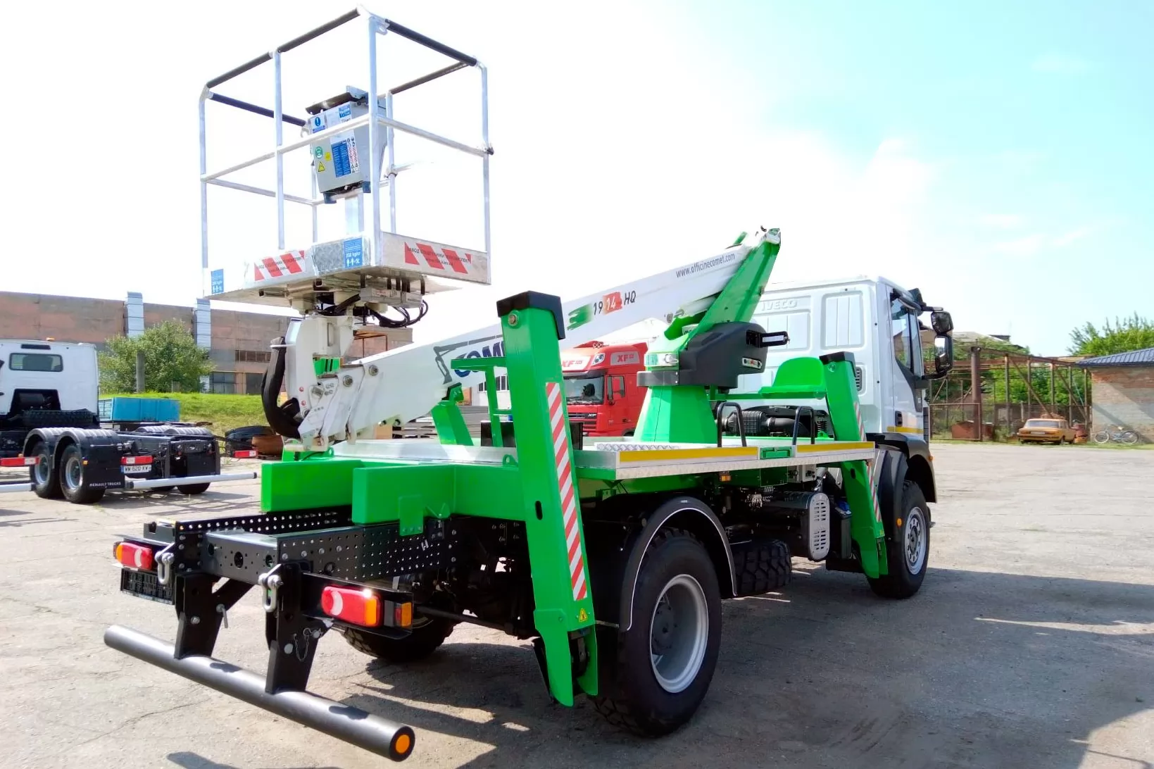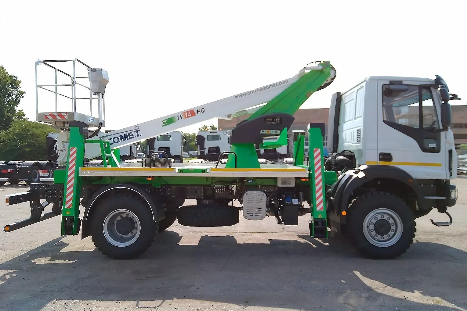 Модель COMET 19 | 2 | 14 HQ – телескопический автогидроподъемник, устанавливаемый на грузовиках с минимальной массой от 3,5 т. Максимальная рабочая высота 18 м с максимальным вылетом 9(10,5, 14) м. Безопасная рабочая нагрузка 250(200, 80) кг. Вращение надземной части составляет 360 градусов.