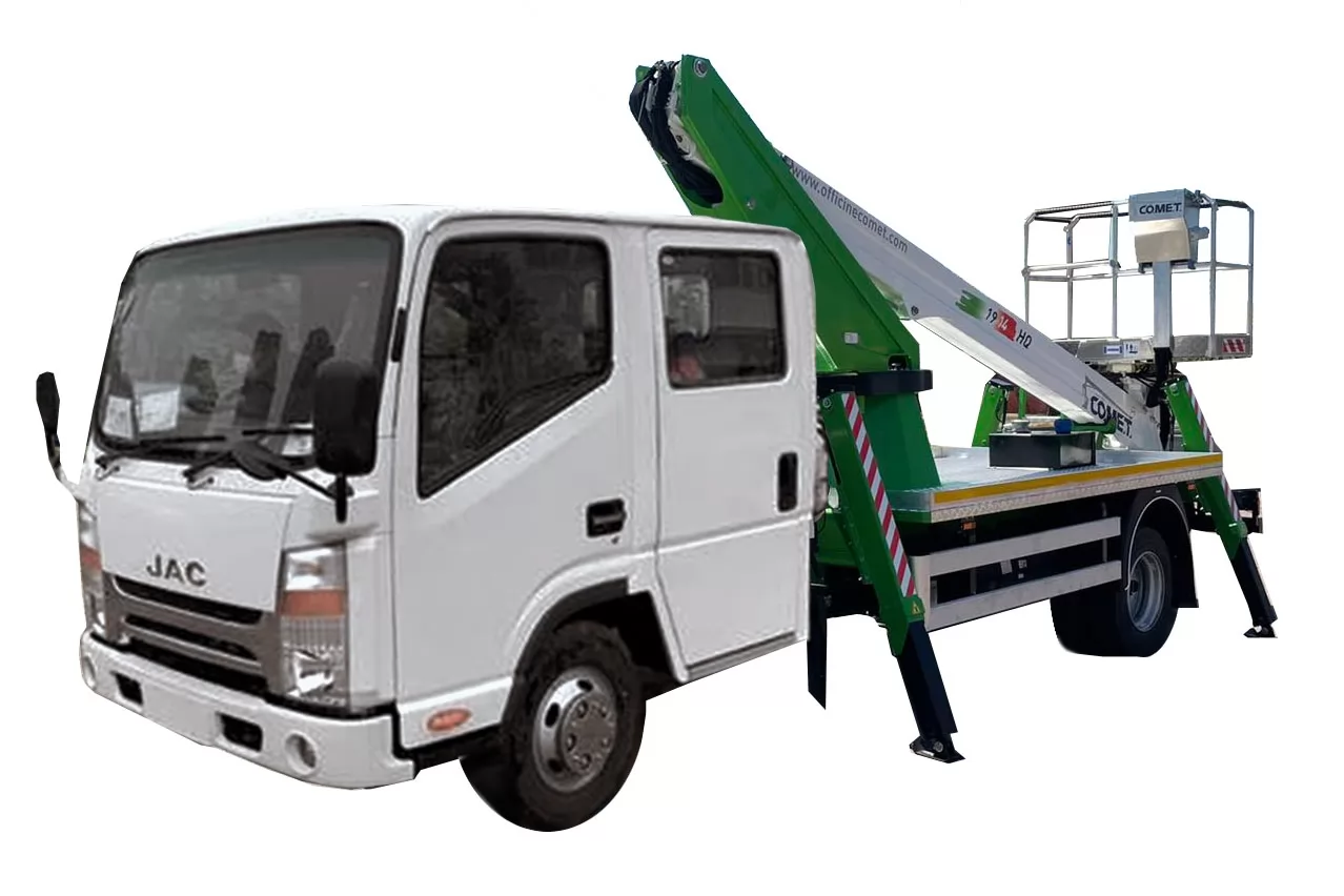 Модель COMET 19 | 2 | 14 HQ – телескопический автогидроподъемник, устанавливаемый на грузовиках с минимальной массой от 3,5 т. Максимальная рабочая высота 18 м с максимальным вылетом 14 м. Безопасная рабочая нагрузка 250 кг. Вращение надземной части составляет 360 градусов.