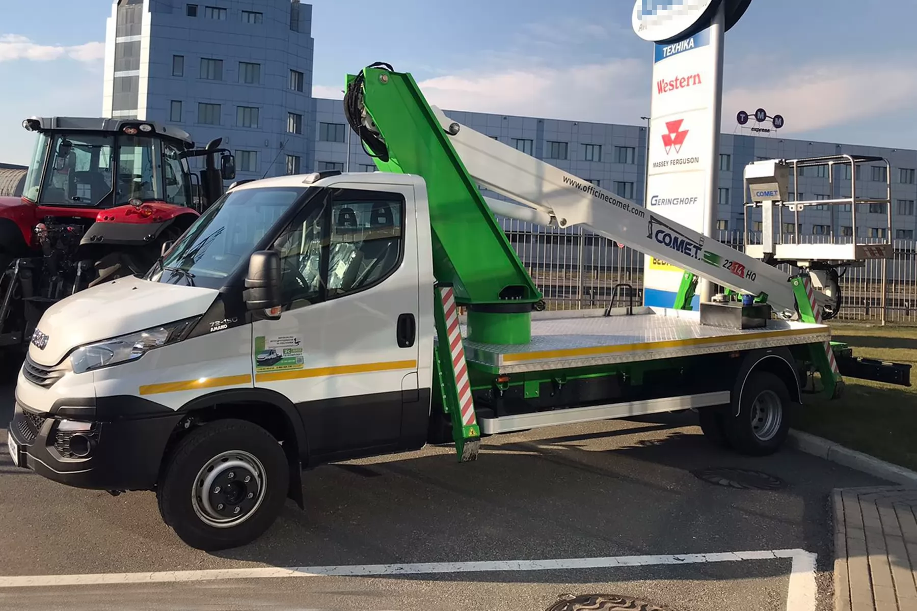 Модель COMET 22 | 2 | 12 (14) HQ – телескопический автогидроподъемник, устанавливаемый на грузовиках с минимальной массой от 6 т. Максимальная рабочая высота 22 м с максимальным вылетом 12(14) м. Безопасная рабочая нагрузка 230(120) кг. Вращение надземной части составляет 360 градусов.
