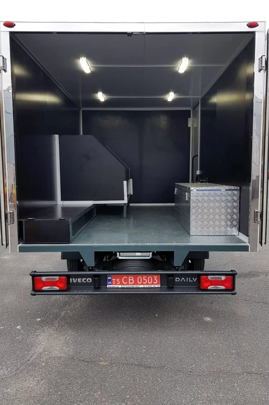 Автомобиль специализированный ТК-IV-АРМ на базе шасси IVECO Daily 35C13D и предназначен для выполнения ремонтно-восстановительных работ с применением приборов и инструментов, входящих в комплектацию автомобиля непосредственно у места проведения работ. Данная спецтехника применяется в дорожном строительстве, машина используется для доставки персонала, инструмента и оборудования для установки дорожных знаков и обслуживания светофоров.