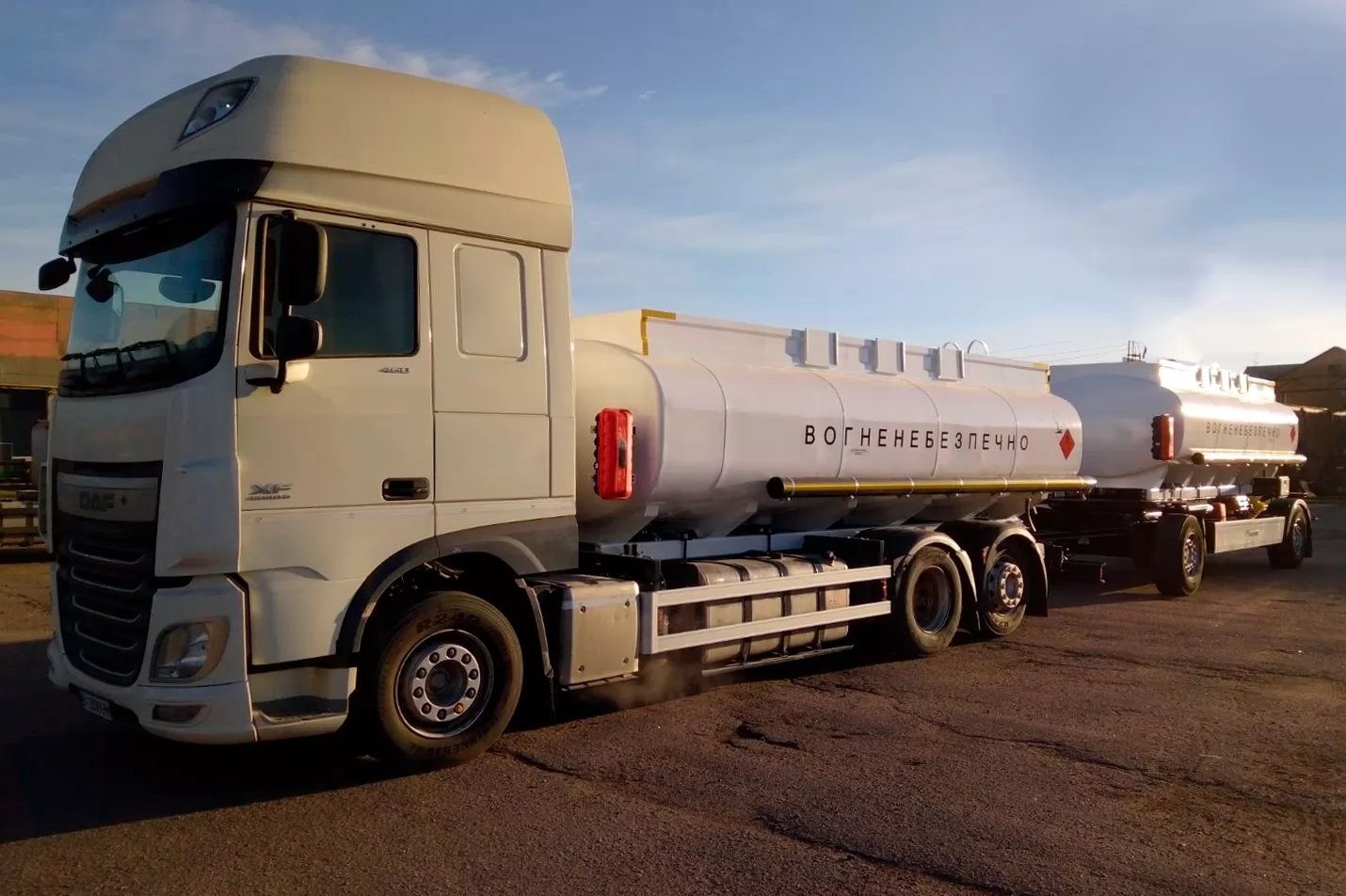 Особенность этой модели - передняя и задняя стенки (днища) имеет эллиптическую форму. А также главной особенностью конструкции цистерн в этом автопоезде является система нижнего налива, которая дает возможность выполнять их наполнение в европейских странах.