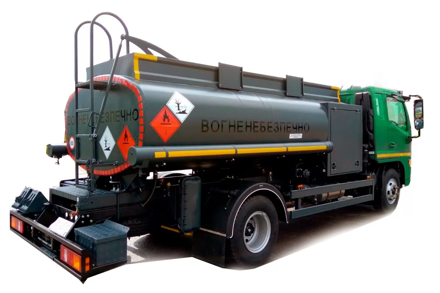 Автотопливозаправщик (V=5 м3) предназначен для перевозки жидких нефтепродуктов плотностью до 860 кг/м3, а также заправки транспортных средств через счетчик; слива нефтепродуктов самотеком из своей цистерны в емкость, расположенную ниже уровня цистерны; слива нефтепродуктов насосом, установленным на автоцистерне. Может быть изготовлен одно-, двухсекционным.