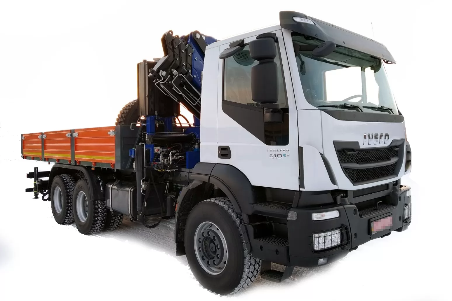 Грузовой автомобиль бортовой тентованный на базе IVECO Trakker 410 E5 6x4 с гидравлическим краном манипулятором (Италия).