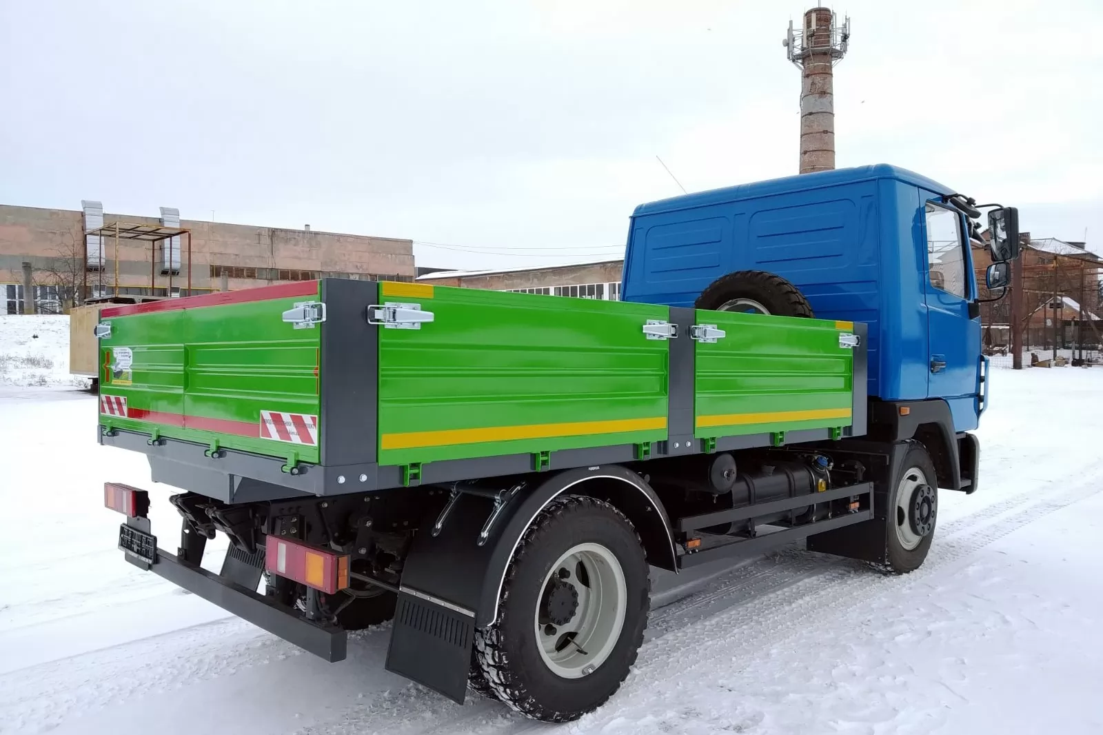 МАЗ-4371 - бортовой автомобиль с тентом на шасси МАЗ-4371Р2 с высотой борта 500 мм. Кузов металлический прямобортный с откидными задним и боковыми бортами. Возможна комплектация с тентом и монтаж крано-манипуляторной установки.