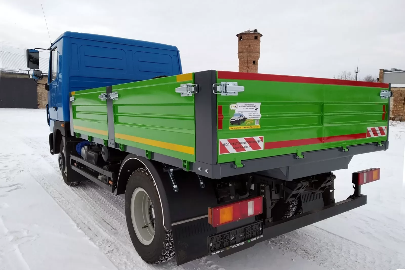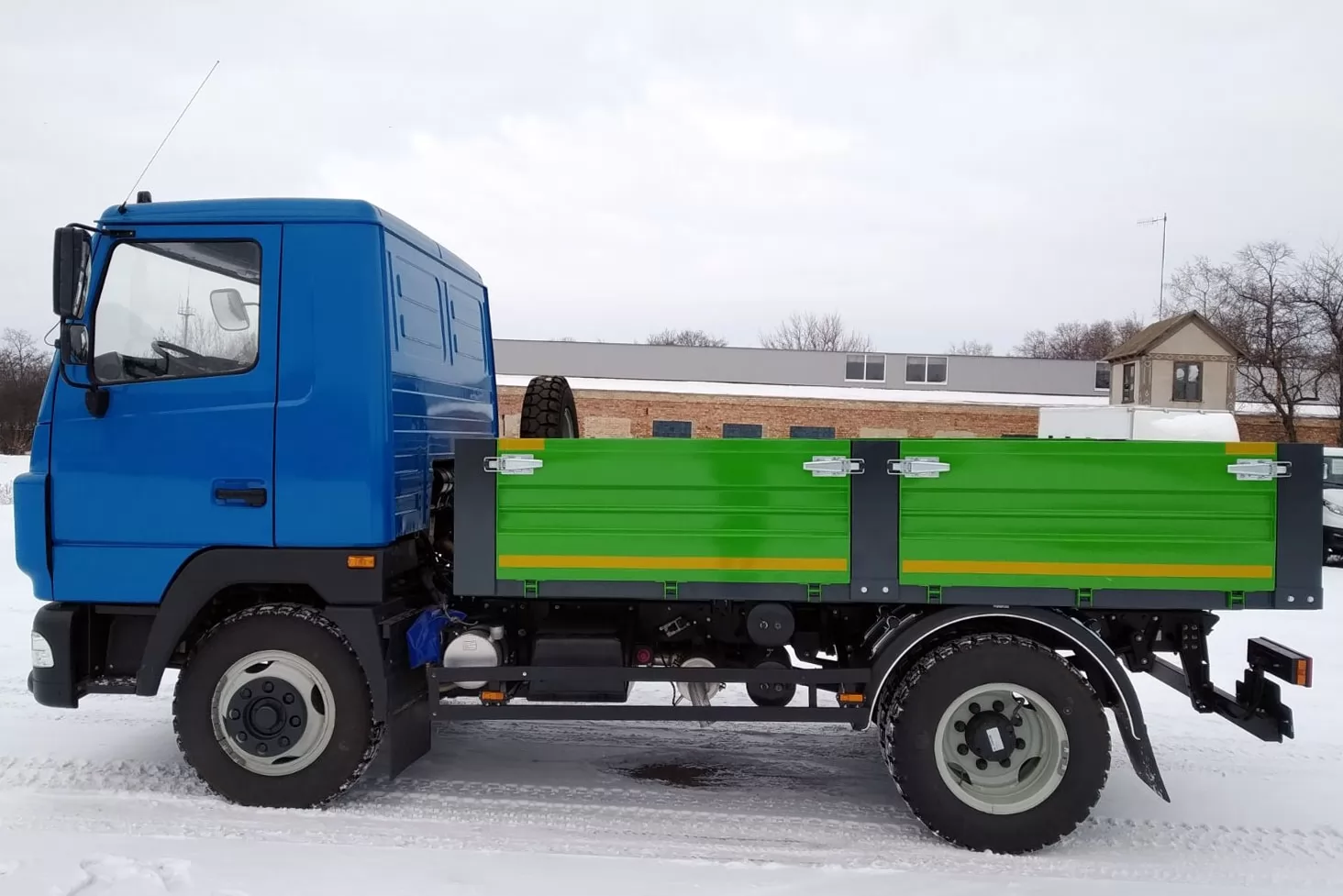 Задние и боковые стойки легкосъемные. Благодаря этому удобнее загружать на автомобиль МАЗ-4371 погрузчиком габаритные грузы.