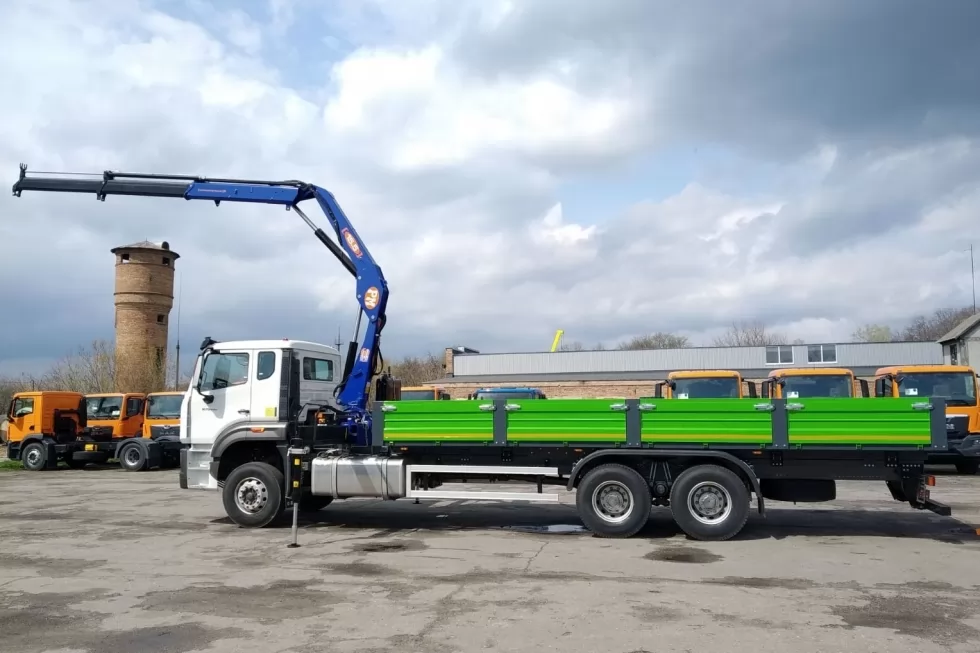 Грузовой автомобиль бортовой на базе Sinotruk Hohan N7G400 6x4 с краном манипулятором PM 15.5 Classic (модификация PM 15522).