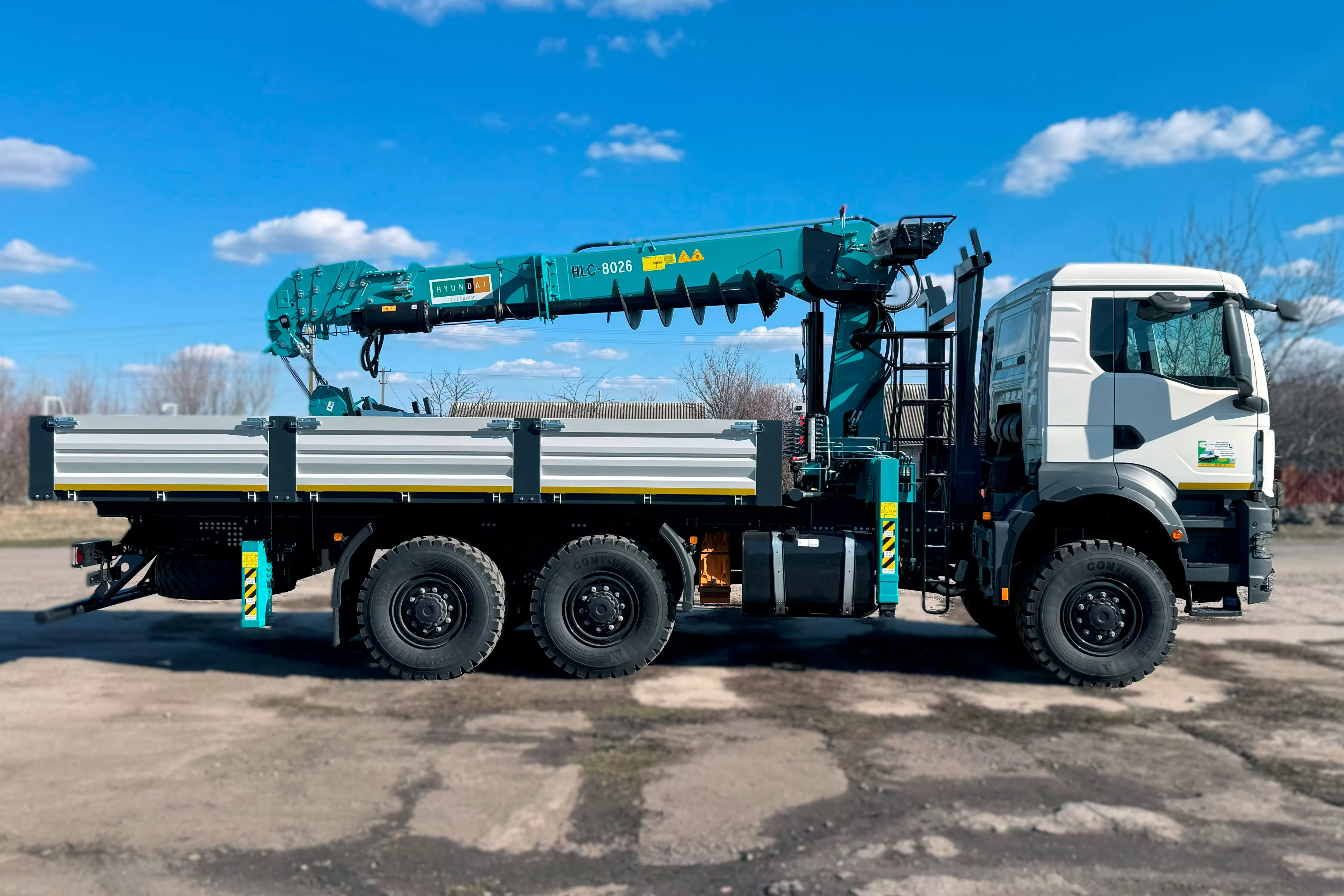 Тросовая крано-манипуляторная установка HKTC HLC-8026A Hyundai Everdigm с буровым оборудованием DIGGA PD10HF (Австралия) и 6-секционной стрелой имеет южнокорейское происхождение. Крупноузловая сборка, установка бурокрана HKTC HLC-8026A Hyundai Everdigm на грузовое шасси и продажа в Украине выполняются Заводом спецтехники Техкомплект.