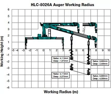 Бурильно-крановая машина (бурокрановая установка, ямобур, бурокран, свайбур, кронобур, столбостав) HKTC HLC-8026A Hyundai Everdigm применяется для бурения и установки линий электропередач, а также в строительстве — для бурения набивных свай.