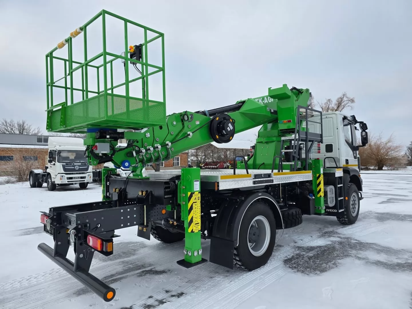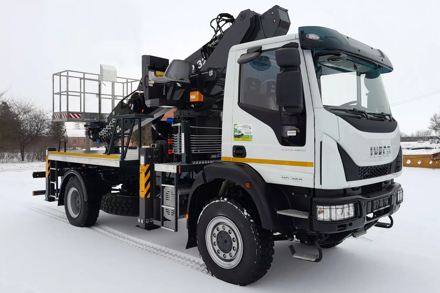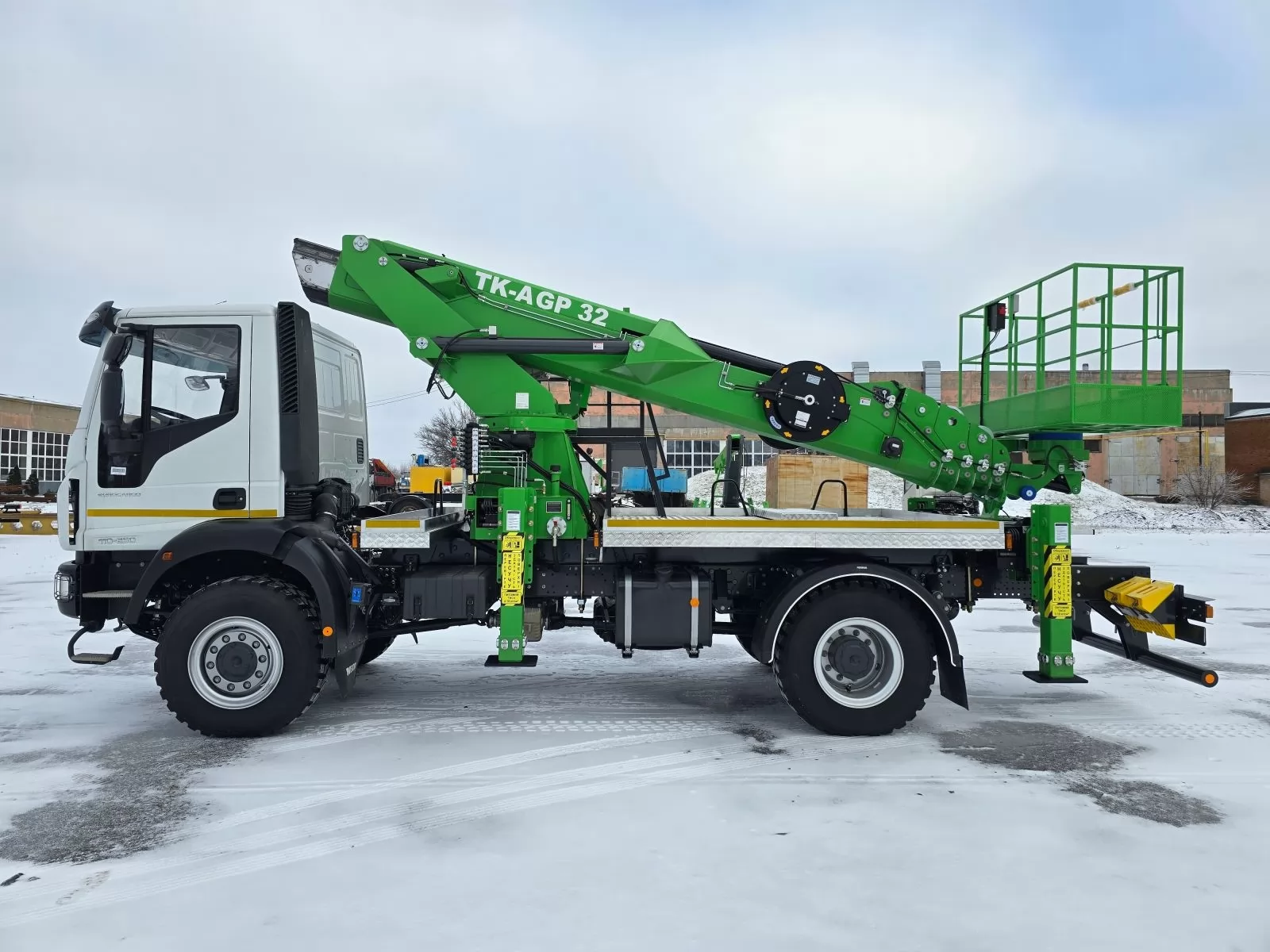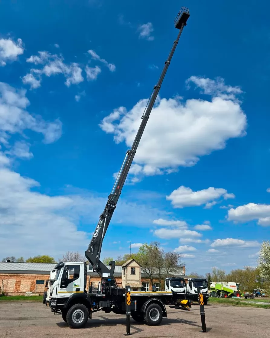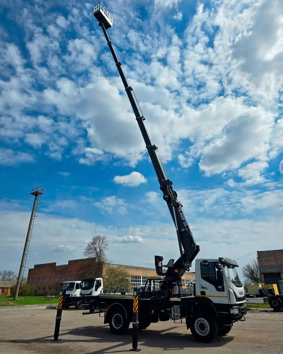 АГП DASAN с рабочей высотой 32 м может быть установлен на любое совместимое грузовое шасси с GVW 10 тонн или выше. В этой карточкетовара мы предлагаем АГП DASAN в двух модификациях CT320EX или DS320 (различаются по базовым техническим характеристикам, таким как максимальная рабочая высота, высота до уровня пола, горизонтальный вылет, нагрузка в рабочей корзине), который может быть смонтирован на популярное и эффективное для оперативной доставки работников полноприводное грузовое шасси IVECO Eurocargo ML 110-250.