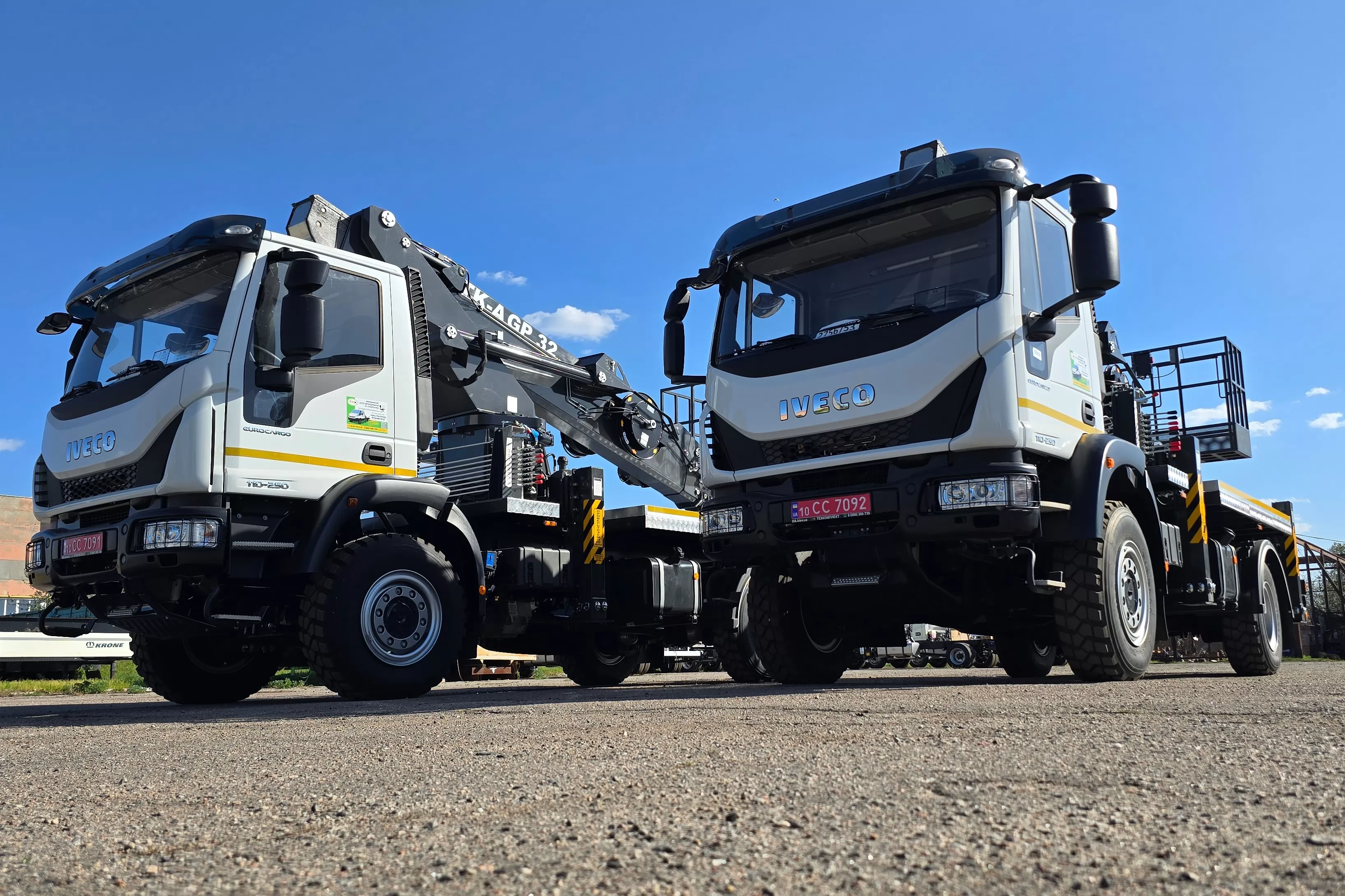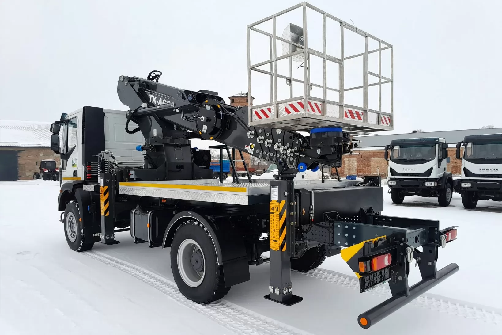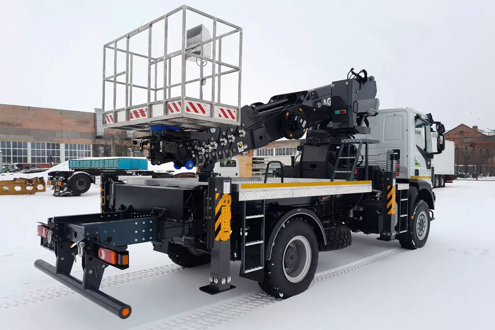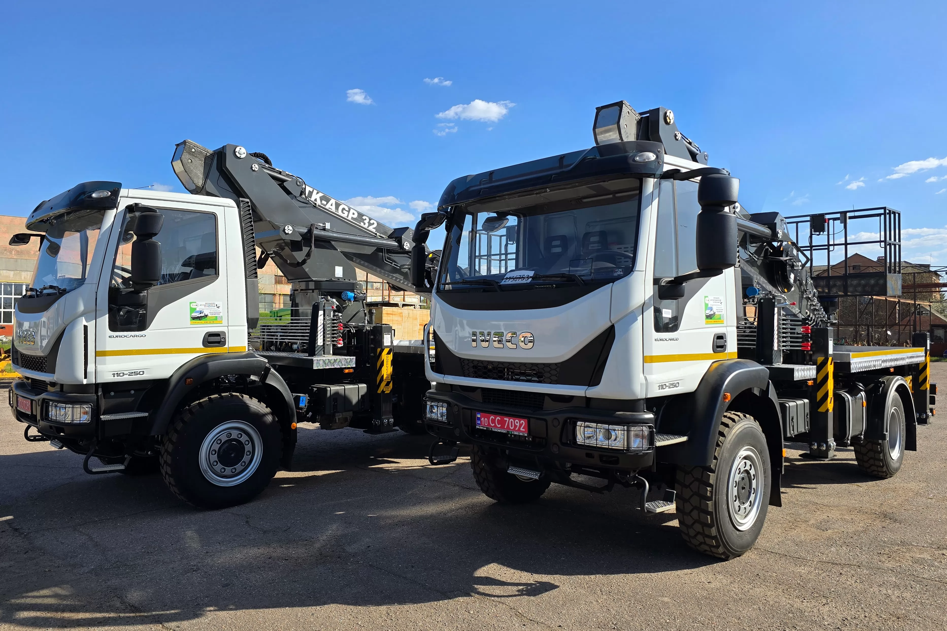 АГП DASAN с рабочей высотой 32 м может быть установлен на любое совместимое грузовое шасси с GVW 10 тонн или выше. В этой карточкетовара мы предлагаем АГП DASAN в двух модификациях CT320EX или DS320 (различаются по базовым техническим характеристикам, таким как максимальная рабочая высота, высота до уровня пола, горизонтальный вылет, нагрузка в рабочей корзине), который может быть смонтирован на популярное и эффективное для оперативной доставки работников полноприводное грузовое шасси IVECO Eurocargo ML 110-250.