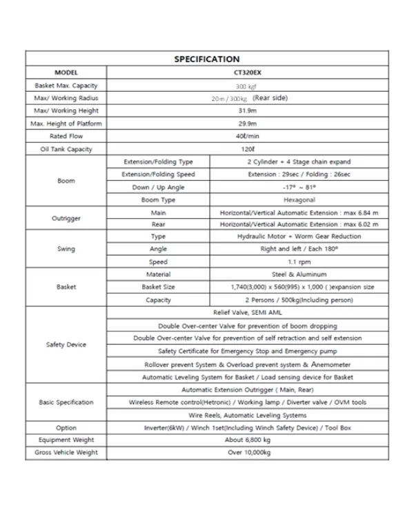 Как сразу становится понятным из названия, крупновысотный южнокорейский автогидроподъемник АГП DASAN CT320EX/DS320 рассчитан на максимальную рабочую высоту 32 м, что делает его наиболее эффективным для применения в энергетике, а также для использования такими силовыми ведомствами, как МВД, МЧС, ВСУ.