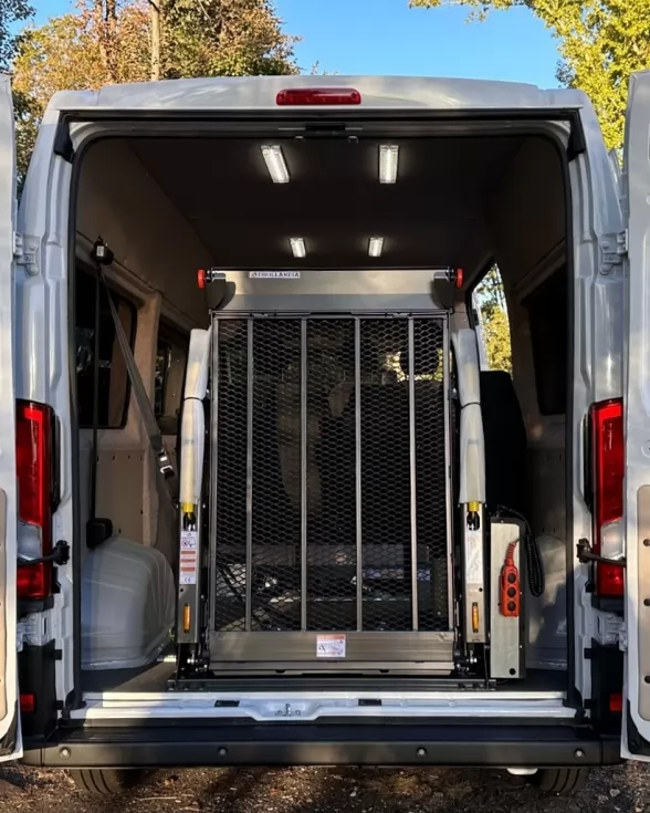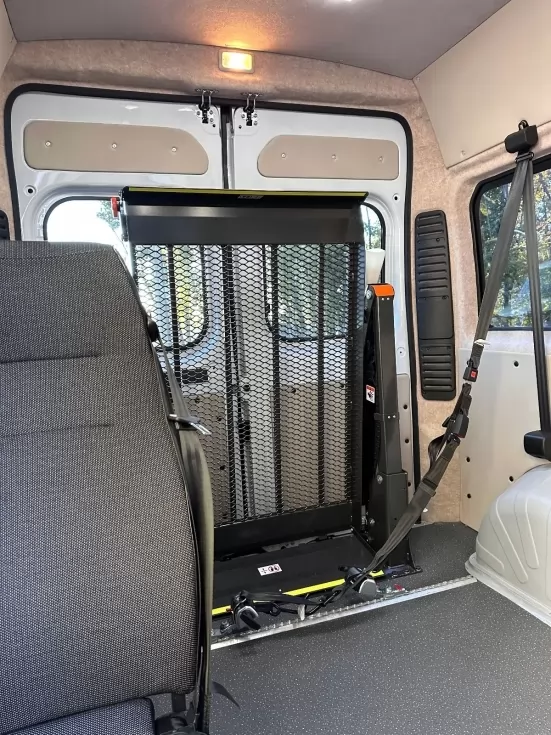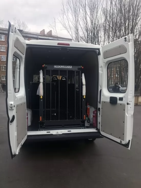 С помощью электрогидроподъемника DHOLLANDIA, управляющий своей работой с помощью дистанционного пульта управления, пассажир в инвалидной коляске может свободно заехать внутрь салона.