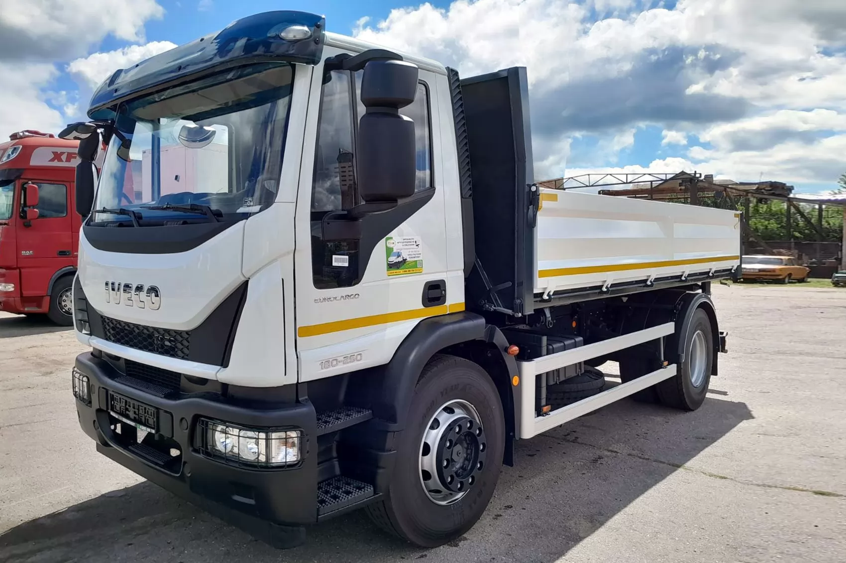 Назначением самосвала TK-IV-CC на грузовом шасси IVECO EuroCargo ML180E25, Euro 5 является перевозка сельскохозяйственной продукции, а также сыпучих стройматериалов – песка, щебня и прочего. Купить самосвал IVECO EuroCargo ML180E25 600 мм в Украине можно в дилерском центре Завода Спецтехники Техкомплект. Напоминаем, что наша компания не только продает автомобили, но также производит их ремонт и обслуживание.