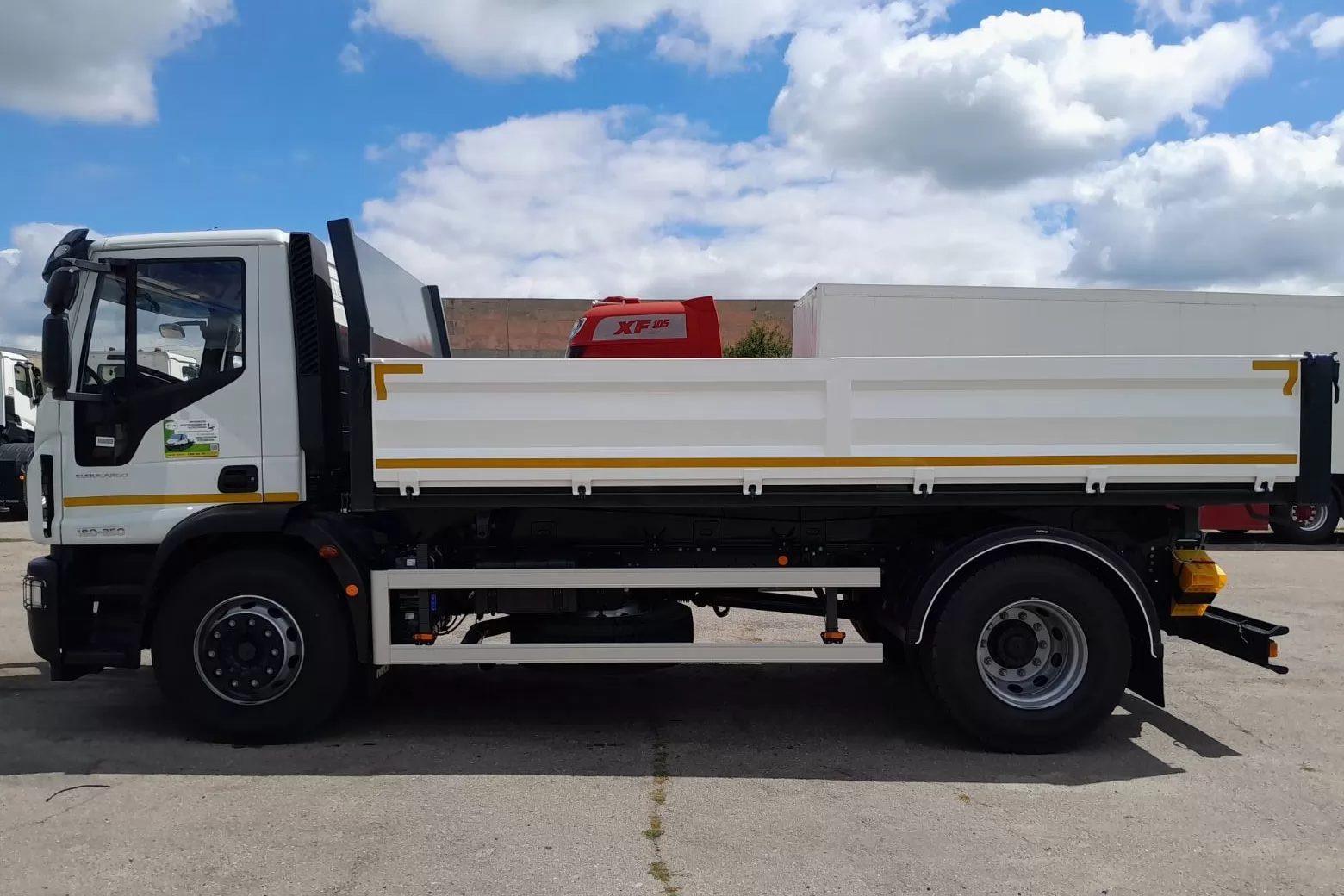 IVECO EuroCargo ML180E25 600 мм самосвал имеет высоту бортов 600 мм. Задний и боковые борта составляют прямобортный металлический кузов. Разгрузка производится с трех сторон. Это позволяет использовать технику в любом из удобных положений, не исключая труднодоступных мест. Небольшие размеры самосвала позволяют эксплуатировать его в местах, где маневрирование ограничено.
