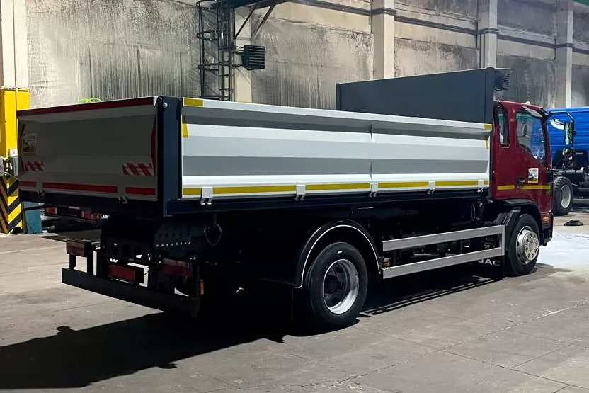 JAC N120 самосвал имеет высоту бортов 750 миллиметров. Задний и боковые борты составляют прямобортный металлический кузов. Разгрузка производится с трех сторон. Это позволяет использовать технику в любом из удобных положений, не исключая труднодоступных мест. Небольшие размеры самосвала позволяют эксплуатировать его в местах, где маневрирование ограничено.