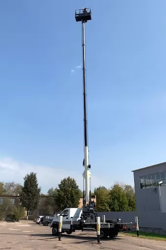 Автогидроподъемники из серии SKYMAN DS340 рассчитаны на рабочую высоту до 34,1 м, допустимая грузоподъемность люльки 400 кг, максимальный вылет 21 м.