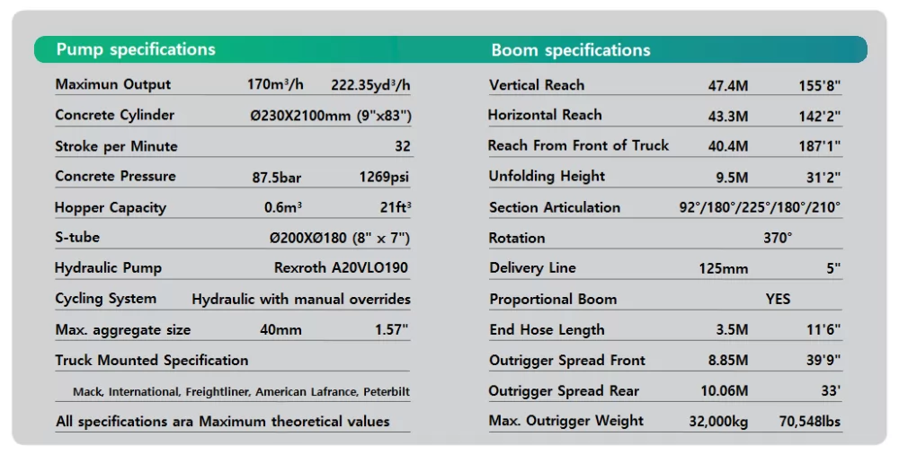 Автобетононасос KCP48ZX170 з подачею бетону 170 кубічних метрів на годину на висоті до 47,1 м - чудовий варіант спеціальної техніки подачі бетону, що використовується під час будівництва доріг.