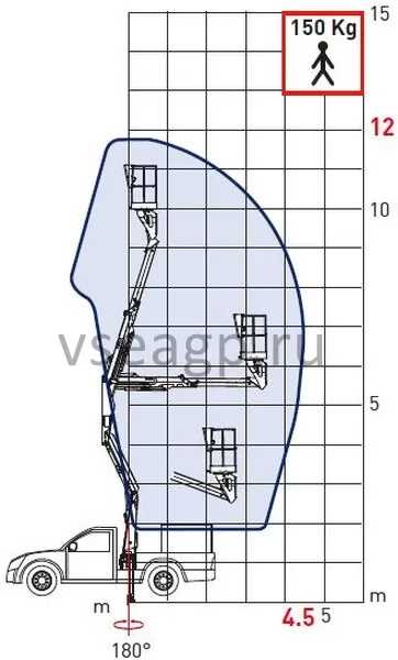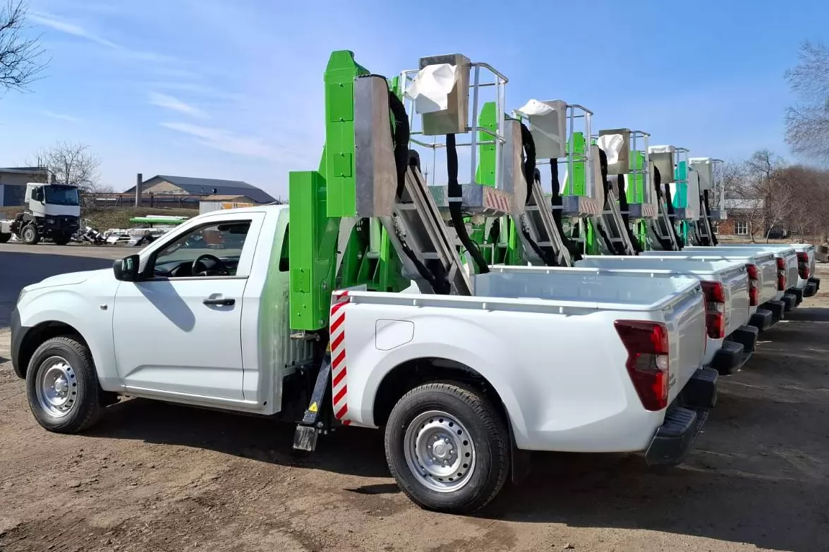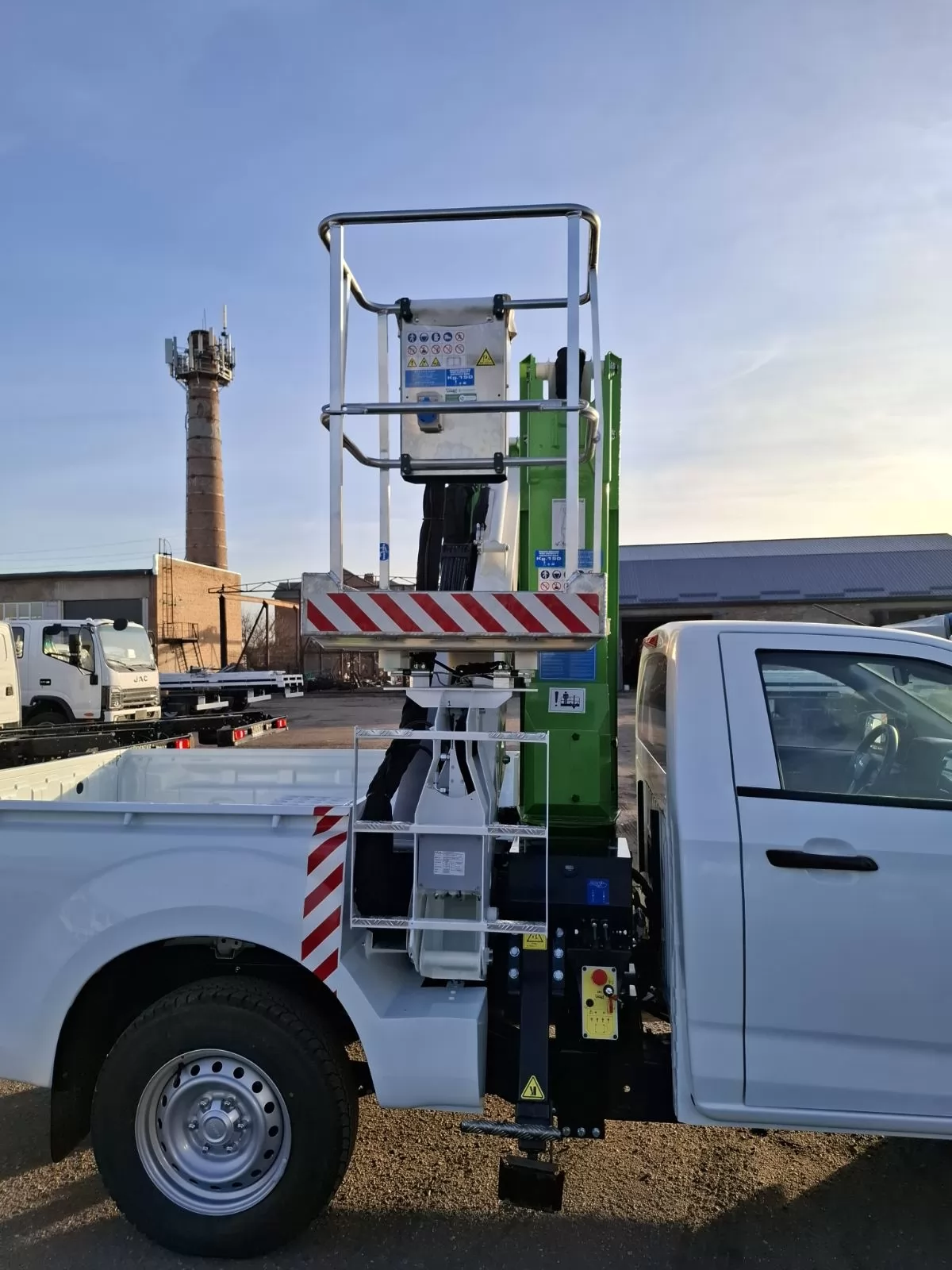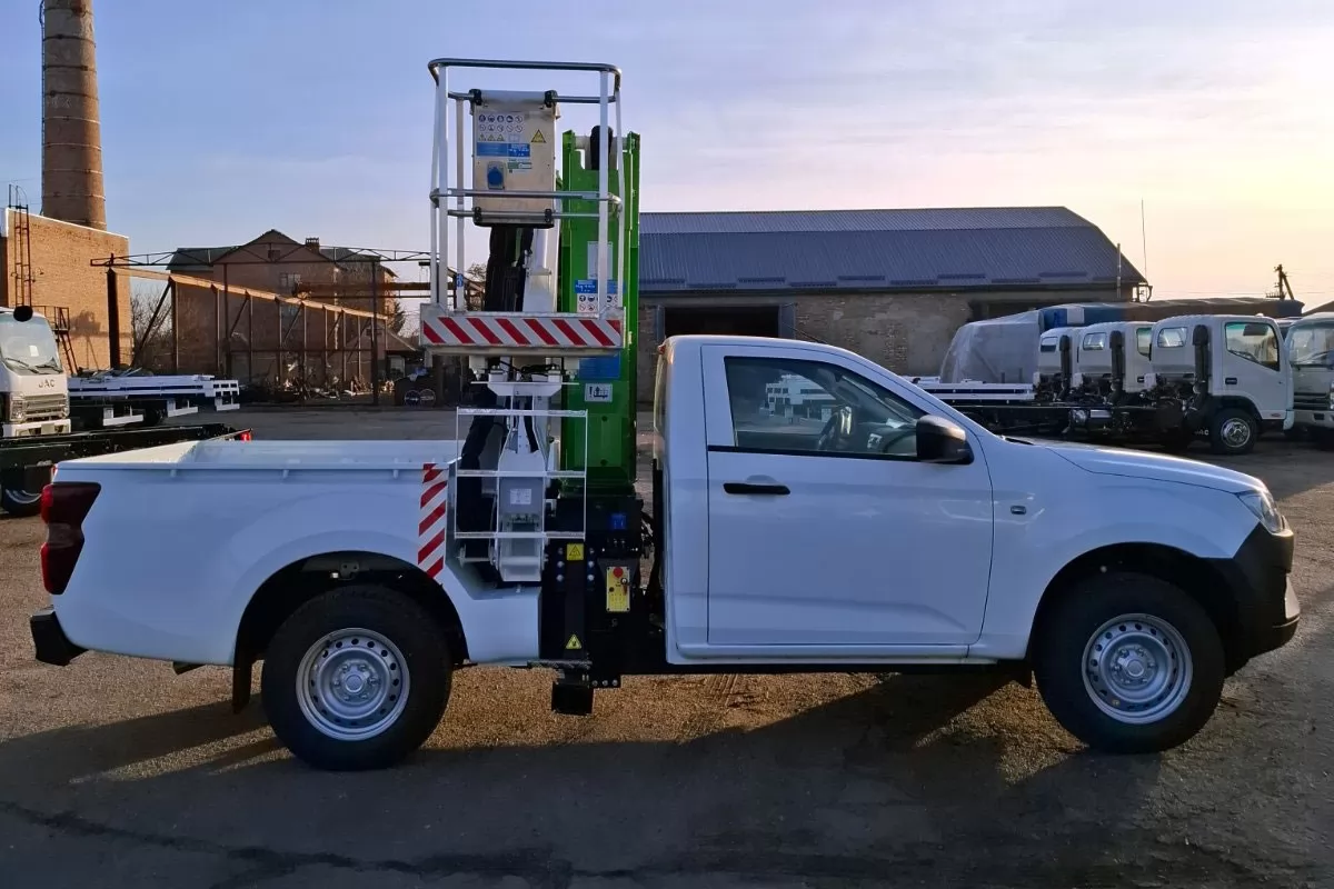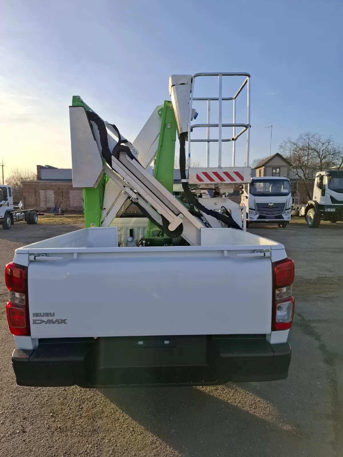 Автовишка X4 12, встановлена на пікап ISUZU D-Max, є ідеальним рішенням для безпечної роботи на висоті до 12 м із горизонтальним вильотом 4,5 м.