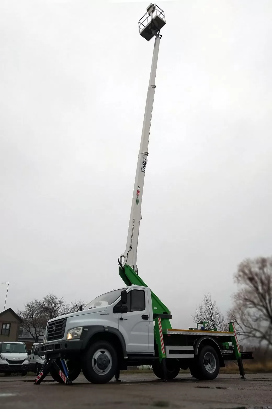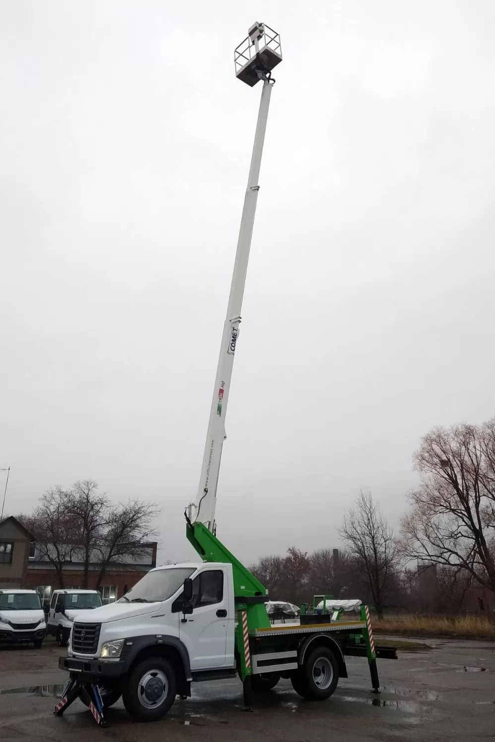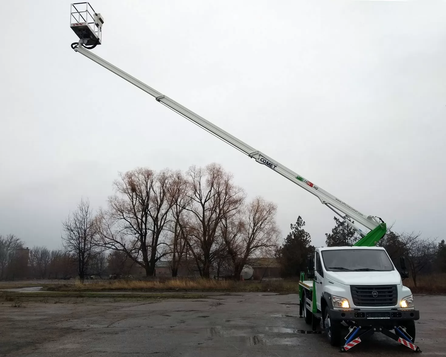 Модель COMET 19 | 2 | 14 HQ – телескопический автогидроподъемник, устанавливаемый на грузовиках с минимальной массой от 3,5 т. Максимальная рабочая высота 18 м с максимальным вылетом 9(10,5, 14) м. Безопасная рабочая нагрузка 250(200, 80) кг. Вращение надземной части составляет 360 градусов.