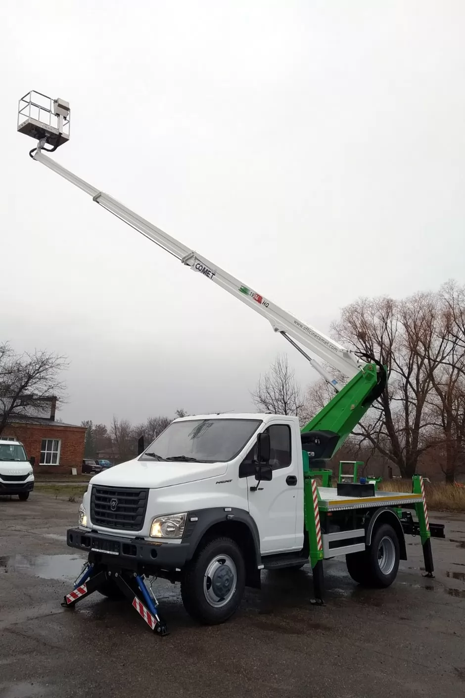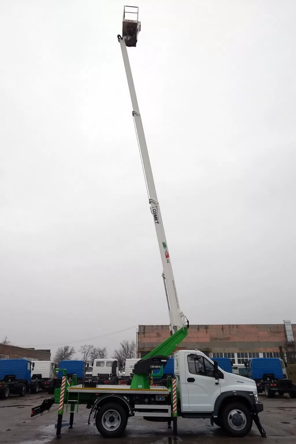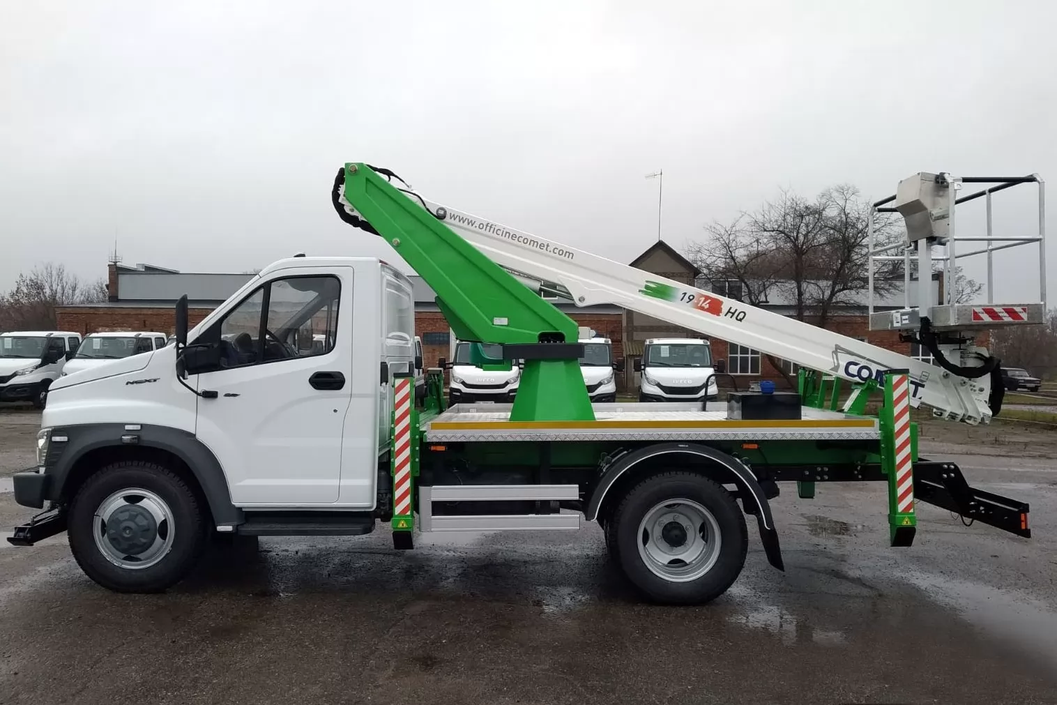 Модель COMET 19 | 2 | 14 HQ – телескопический автогидроподъемник, устанавливаемый на грузовиках с минимальной массой от 3,5 т. Максимальная рабочая высота 18 м с максимальным вылетом 9(10,5, 14) м. Безопасная рабочая нагрузка 250(200, 80) кг. Вращение надземной части составляет 360 градусов.