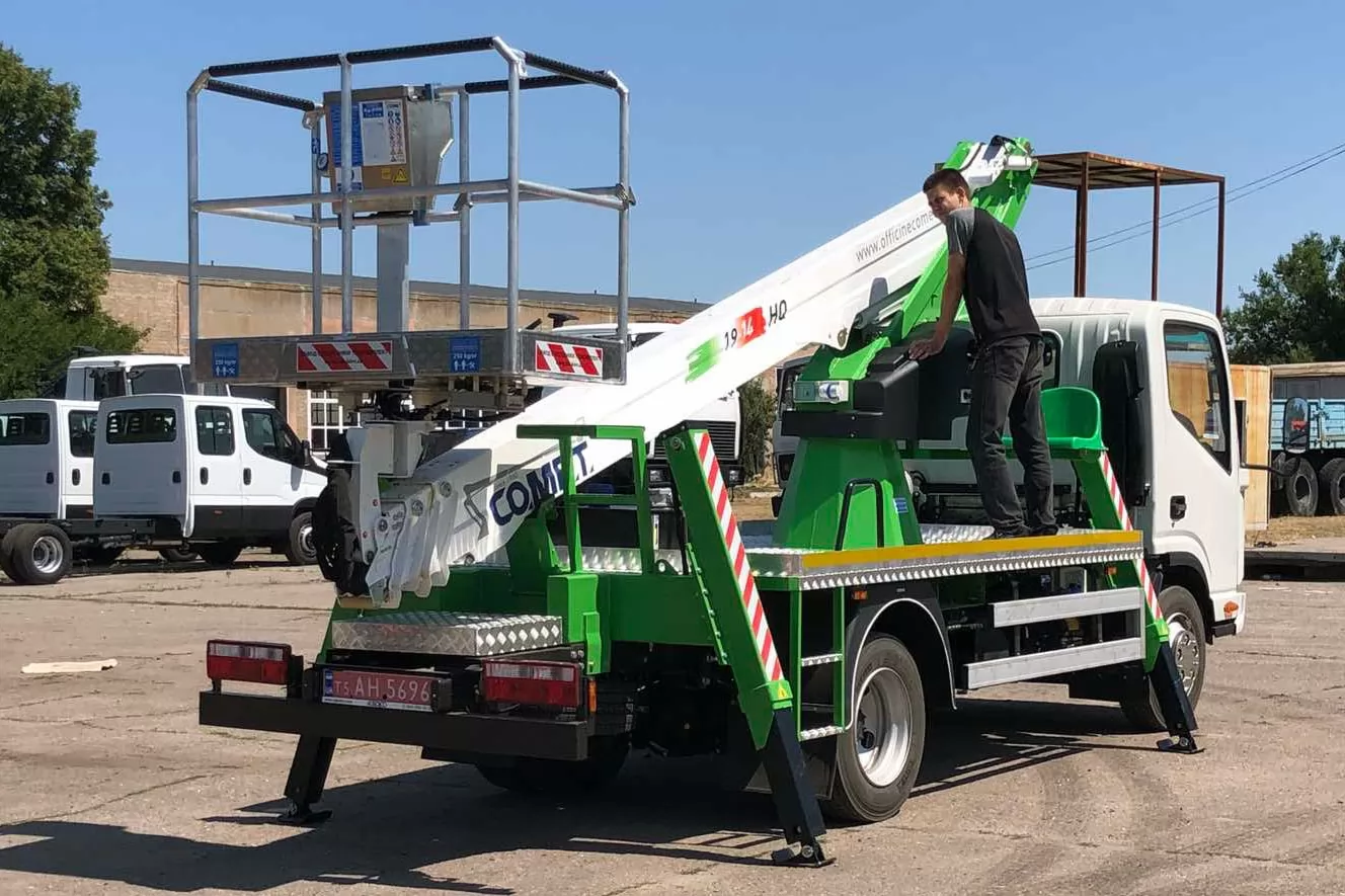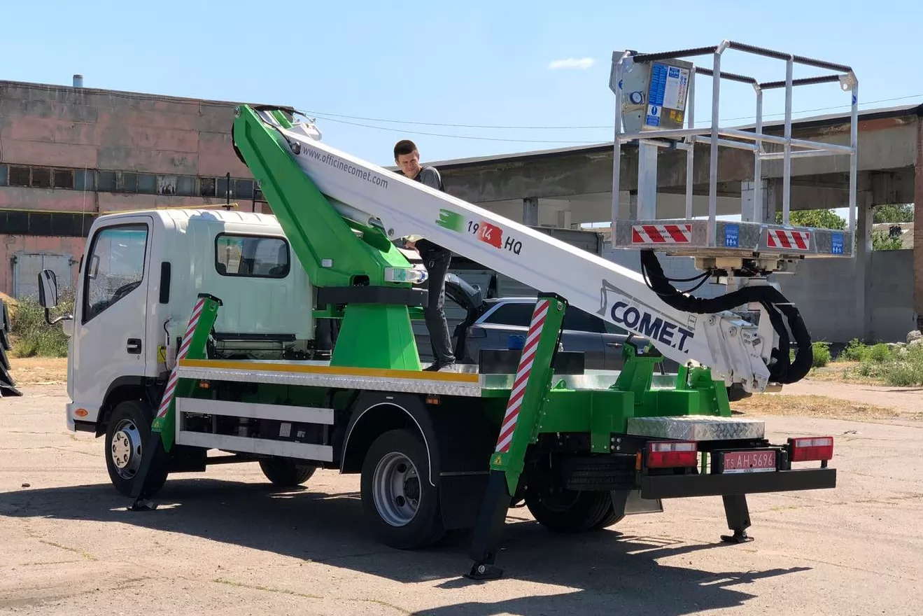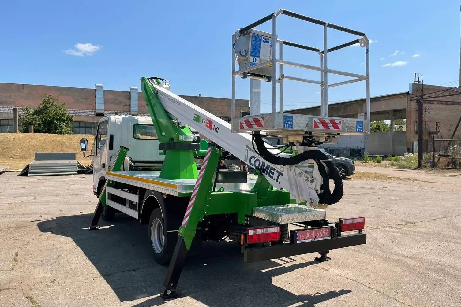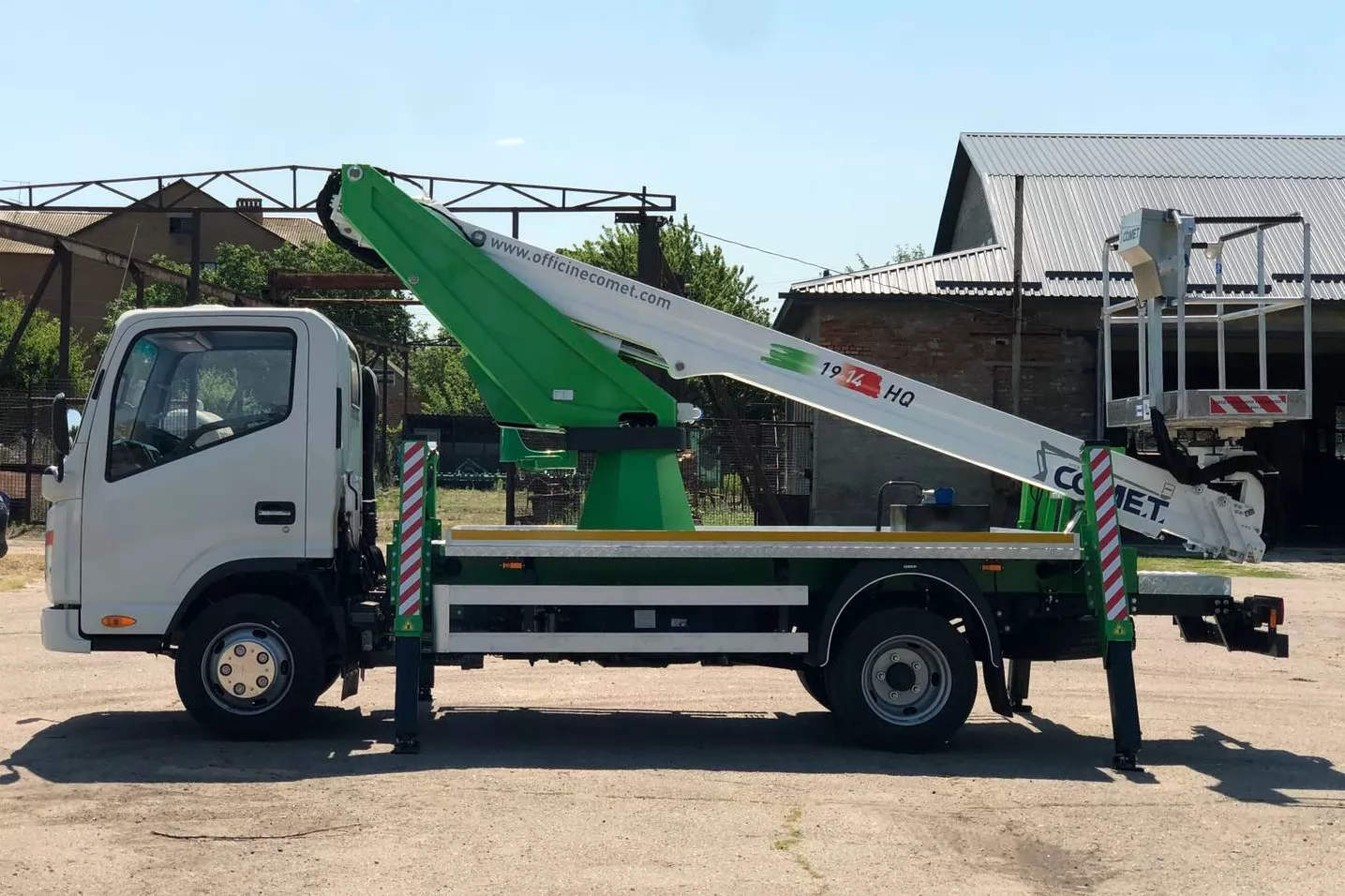 Модель COMET 19 | 2 | 14 HQ – телескопічний автогідропідіймач, що встановлюється на вантажівках з мінімальною масою від 3,5 т. Максимальна робоча висота 18 м із максимальним вильотом 9(10,5, 14) м. Безпечне робоче навантаження 250(200, 80) кг. Обертання надземної частини складає 360 градусів.