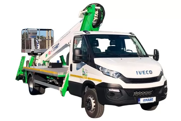 Модель COMET 22 | 2 | 12 (14) HQ – телескопічний автогідропідйомник, що встановлюється на вантажівках з мінімальною масою від 6 т. Максимальна робоча висота 22 м із максимальним вильотом 12(14) м. Безпечне робоче навантаження 230(120) кг. Обертання надземної частини складає 360 градусів.