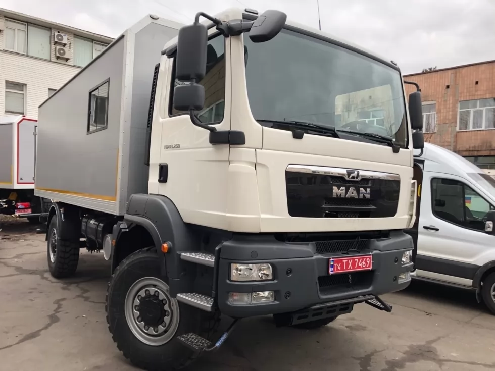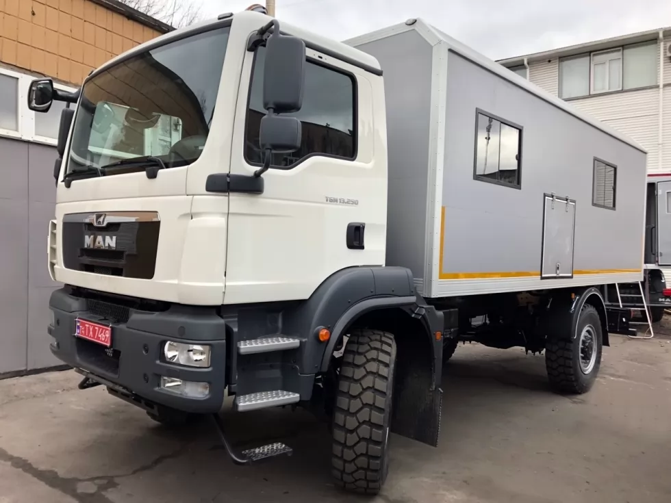 Житловий модуль ТК-ТGM-13.250-АС на базі МАN TGM-13.250 призначений для забезпечення комфорту та прийнятних умов проживання персоналу, який працює безпосередньо біля місць проведення ремонтно-відновлювальних та інших робіт на місцевості, віддаленій від населених пунктів.