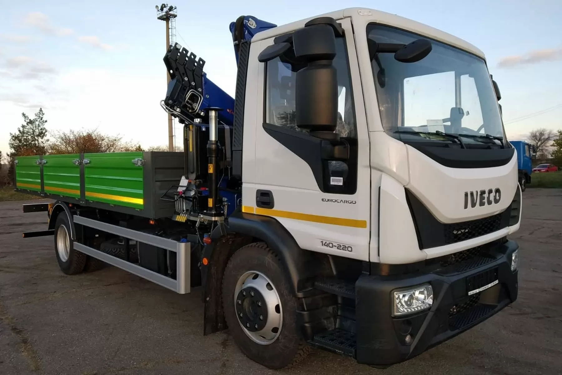 Бортовий автомобіль з крано-маніпуляторною установкою PM 12024. 3-стороннє розвантаження бортів і наявність крано-маніпуляторної установки за кабіною робить машину дуже зручною для завантаження/вивантаження вантажу, що перевозиться.