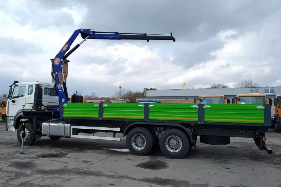 Вантажний автомобіль бортовий на базі Sinotruk Hohan N7G400 6x4 з краном маніпулятором PM 15.5 Classic (модифікація PM 15522).