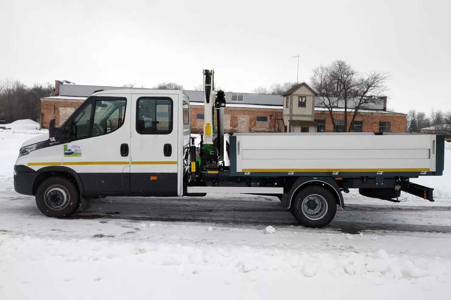 Бортовий автомобіль ТК-IV-КМ на базі IVECO DAILY 60С15D із крано-маніпуляторною установкою СОМЕТ ХС700 А1. 3-стороннє розвантаження бортів і наявність крано-маніпуляторної установки за кабіною робить модель ТК-IV-КМ дуже зручною для завантаження/вивантаження вантажу, що перевозиться.