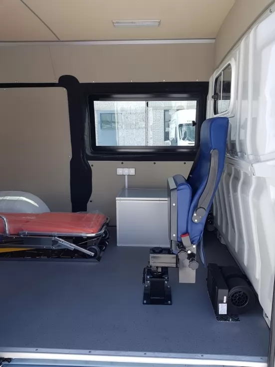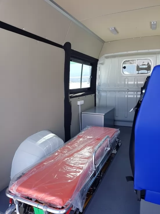 Машина обладнана світлосигнальною панеллю, носилками та може комплектуватися іншим необхідним медичним обладнанням: