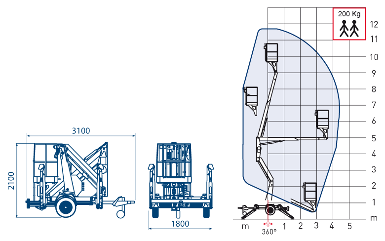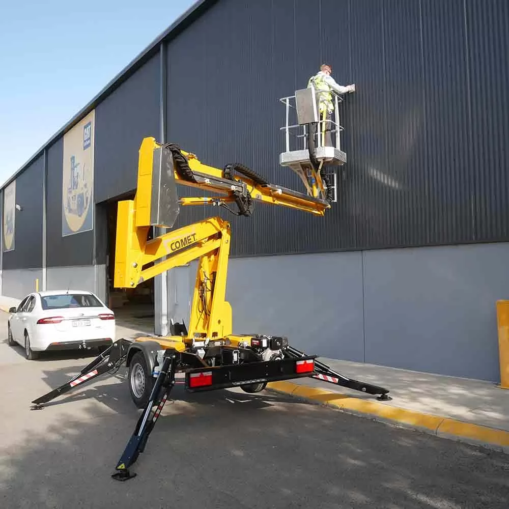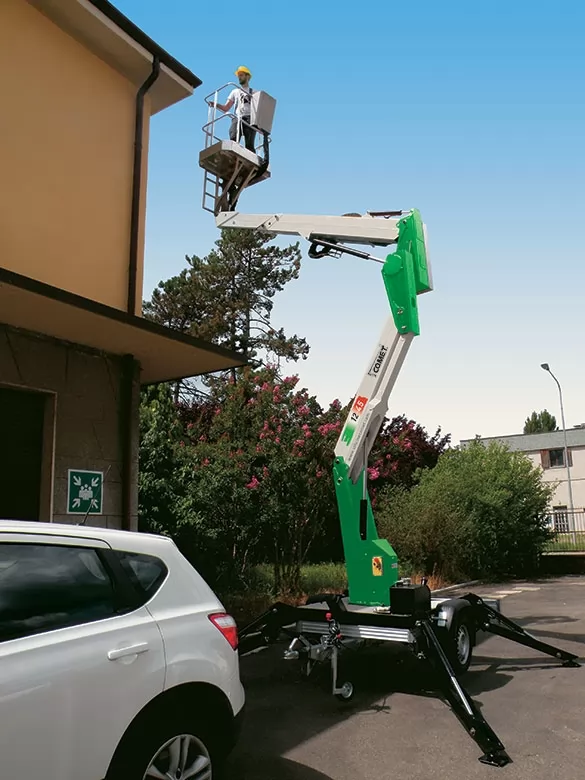 COMET X TRAILER 12 - один із найкомпактніших підйомників доступних в Україні. Габарити X-Trailer виділяються серед конкурентів своєю довжиною в транспортному положенні всього 3,55 м. Цей інноваційний підіймач зі стрілою пропонує робочу висоту 12 м, горизонтальний виліт 4,5 м і вантажопідйомність колиски 200 кг. X-Trailer також доступний у версії X-Trailer 14 із робочою висотою 14 м.