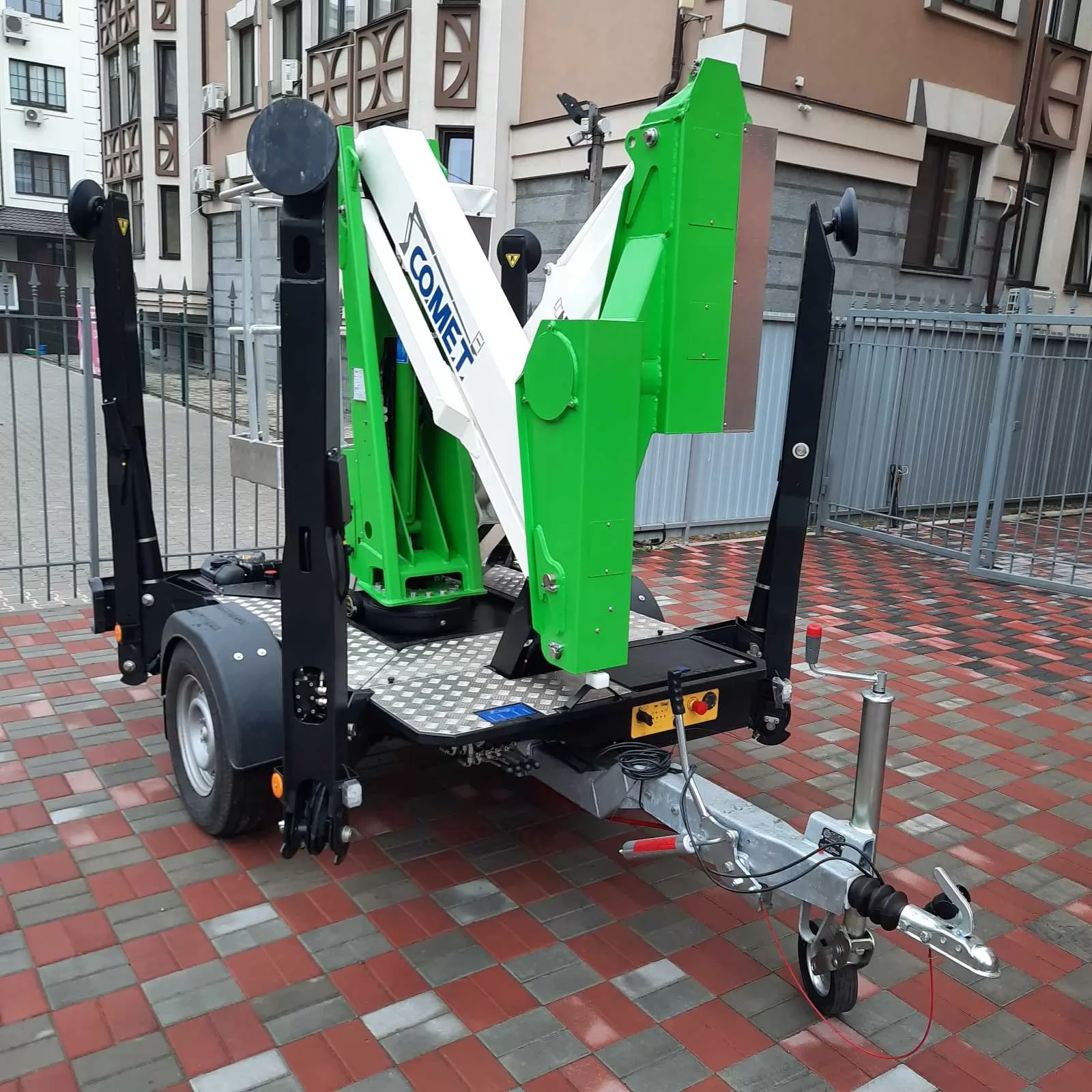 Встановлюється на причіп для зручного підключення до різних автомобілів та транспортних засобів. Автогідропідйомник COMET X TRAILER 14 - це компактний агрегат для виконання висотних робіт.