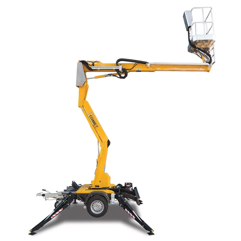 COMET X TRAILER 14 - один із найкомпактніших підйомників доступних в Україні. Габарити X-Trailer виділяються серед конкурентів своєю довжиною в транспортному положенні всього 3,55 м. Цей інноваційний підіймач зі стрілою пропонує робочу висоту 14 м, горизонтальний виліт 6,5 м і вантажопідйомність колиски 200 кг. X-Trailer також доступний у версії X-Trailer 12 із робочою висотою 12 м.