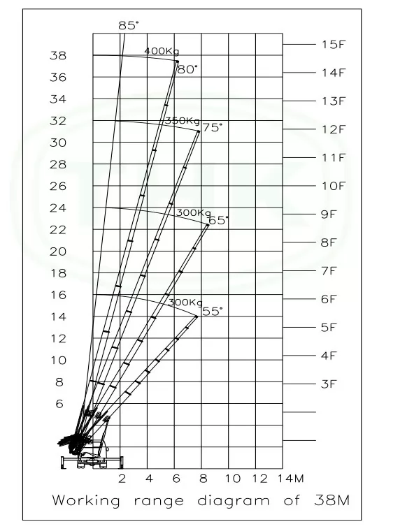 | Робочий діапазон | Робоча висота / радіус, кг/м, ° |