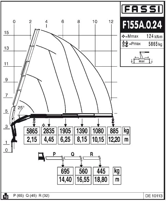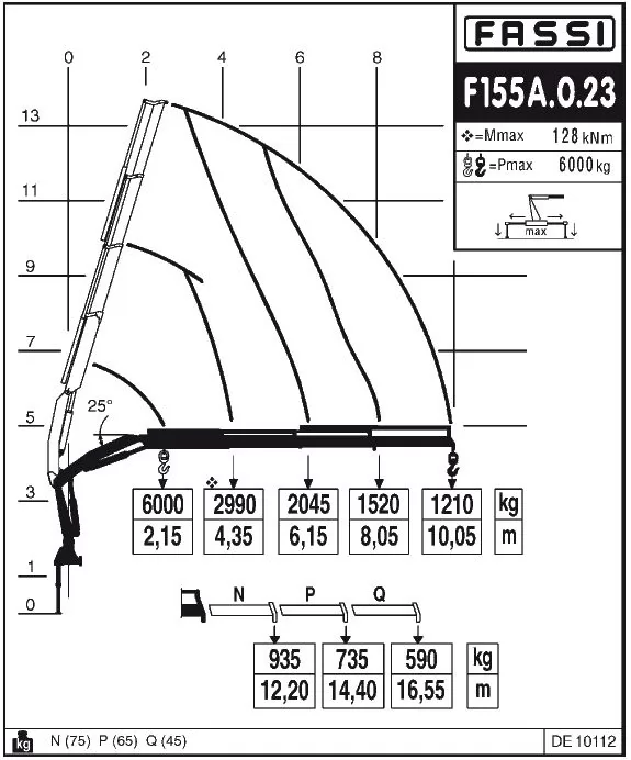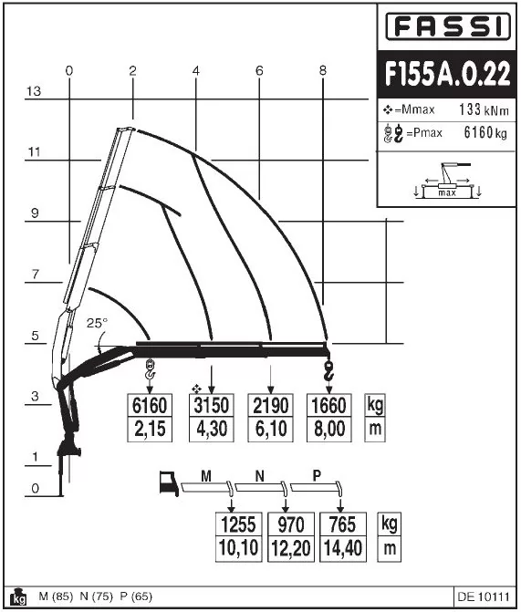 Крани-маніпулятори Fassi F155A середньої серії Medium duty мають вантажний момент 14,48 тм і максимальний виліт стріли до 14,7 м.