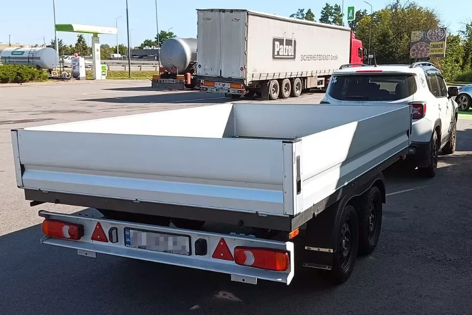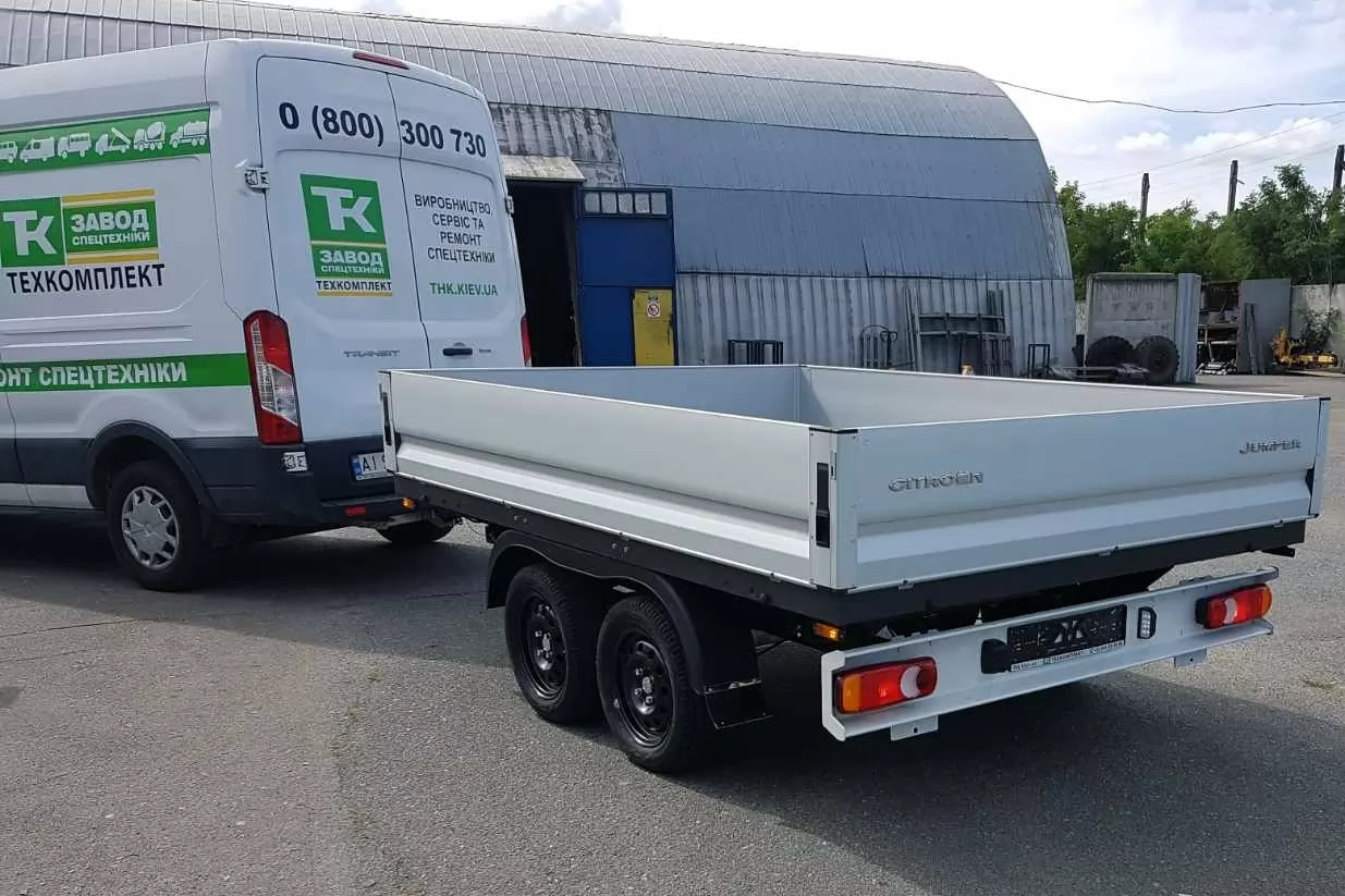 Причіп автомобільний легковий двовісний з тормозом накату ТК-ПВ-2,5 для забезпечення перевезення вантажів та інструменту безпосередньо до місць проведення робіт, готовий до експлуатації з легковими автомобілями.