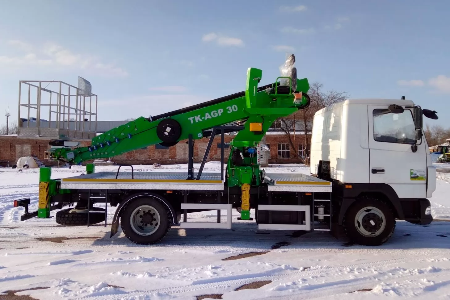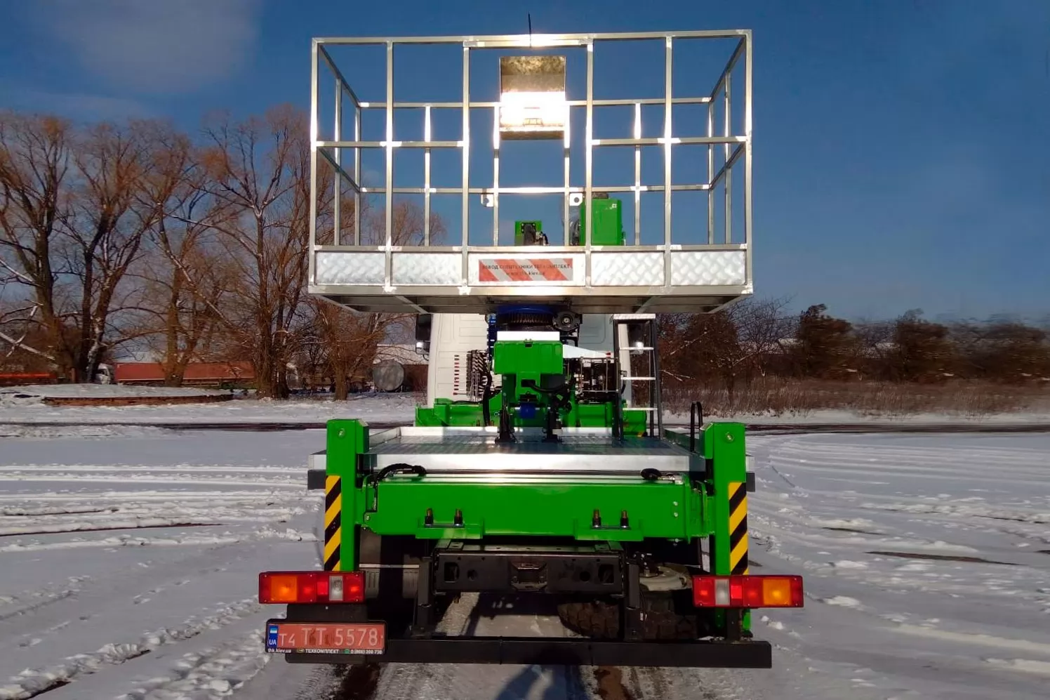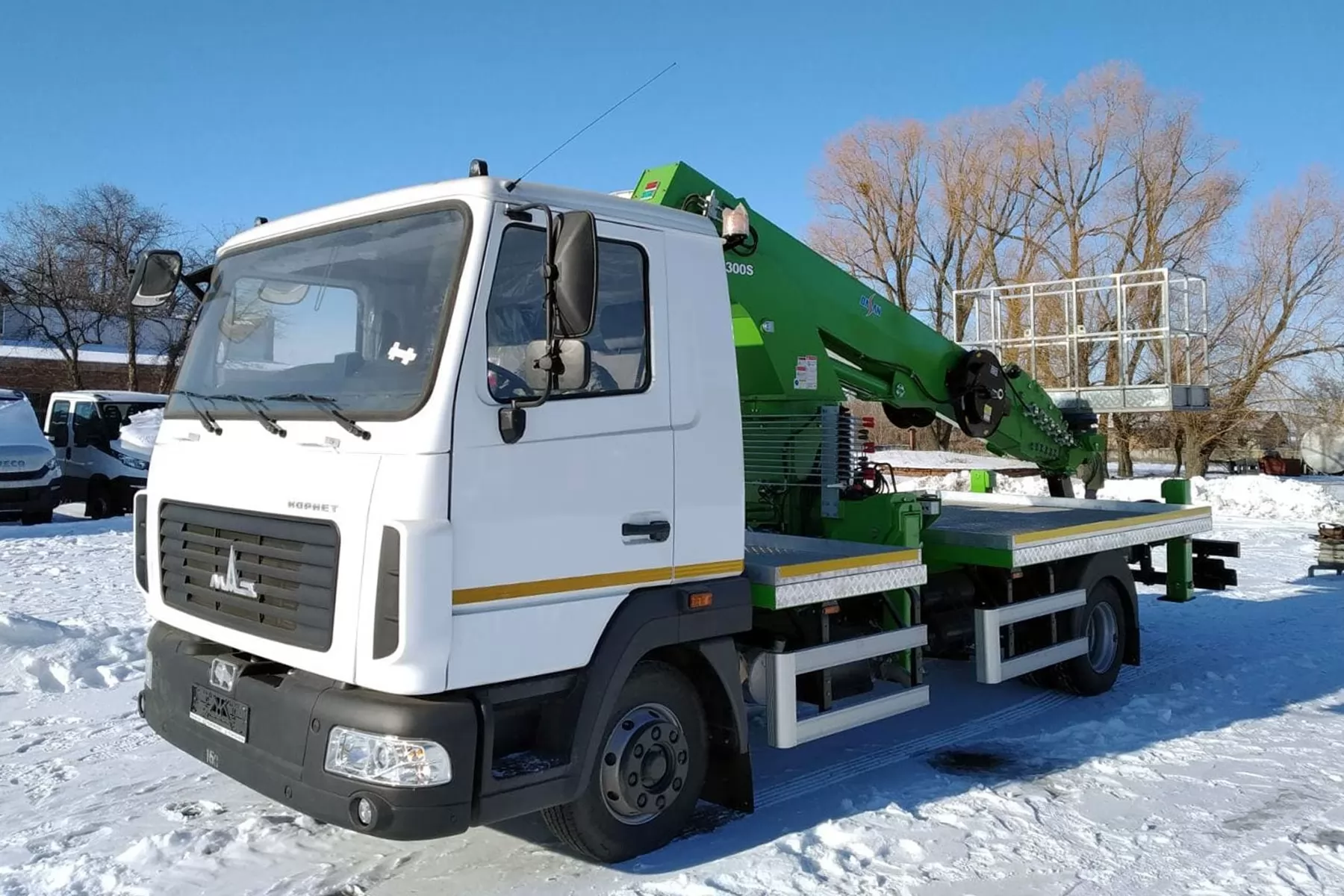 Автогидроподъемники из серии SKYMAN рассчитаны на рабочую высоту до 30 м, допустимая грузоподъемность люльки 300 кг, максимальный вылет 18 м.