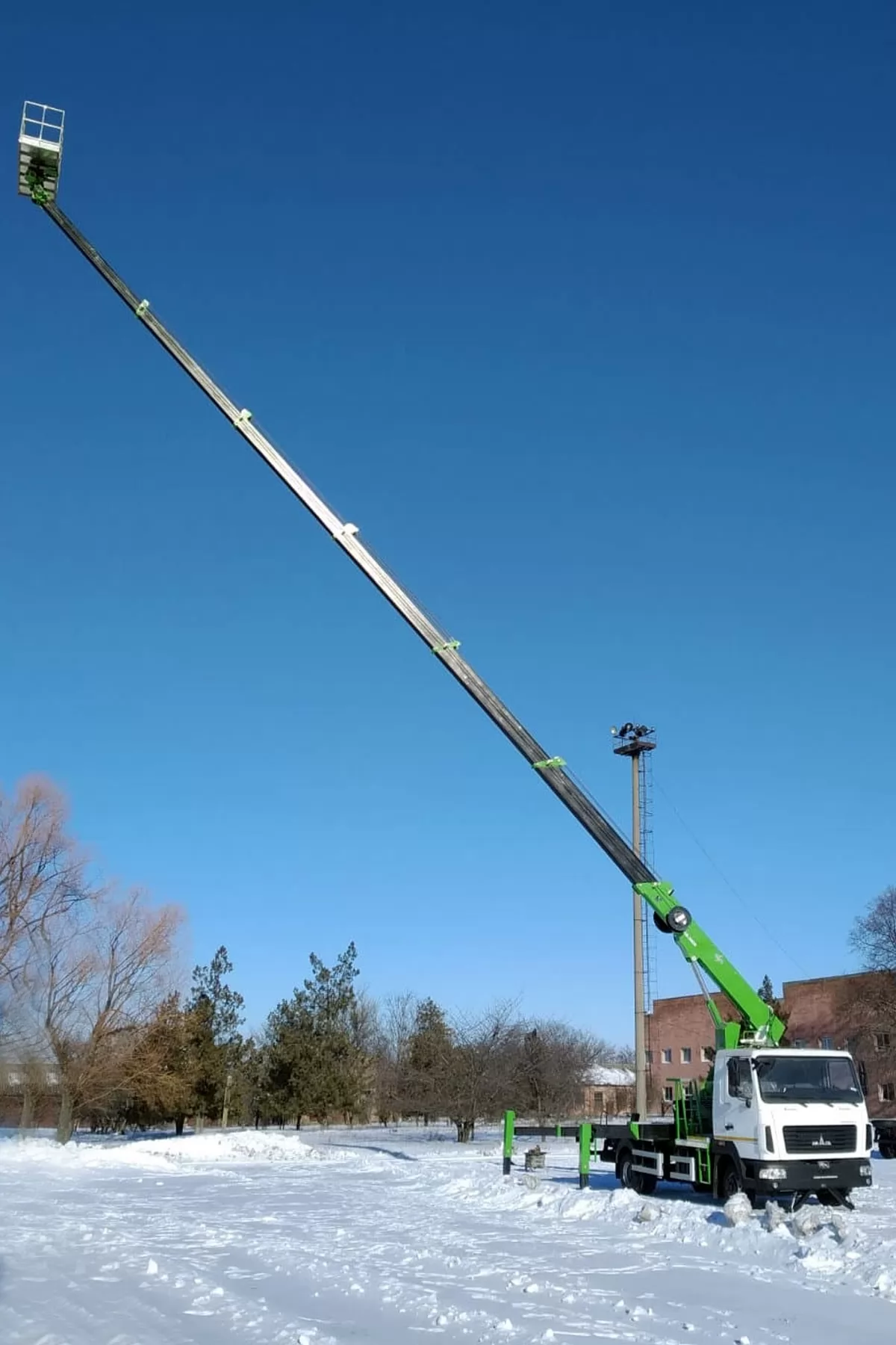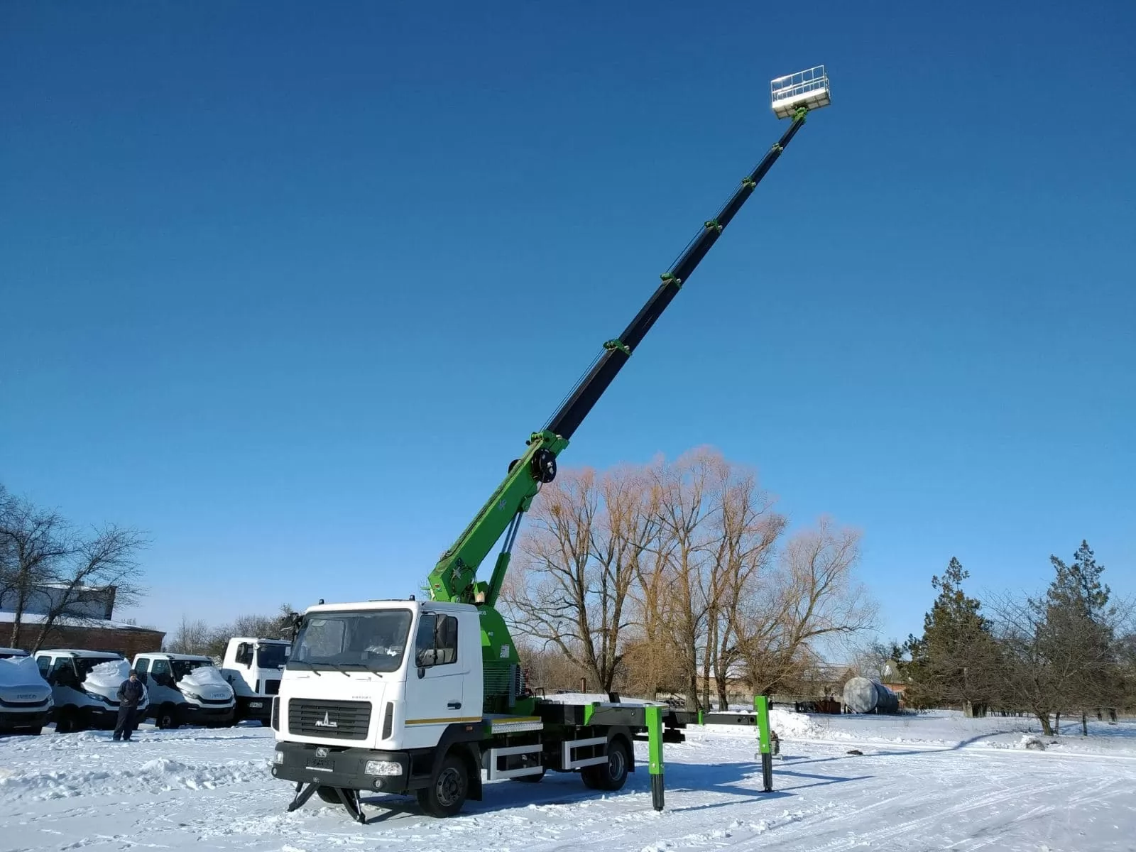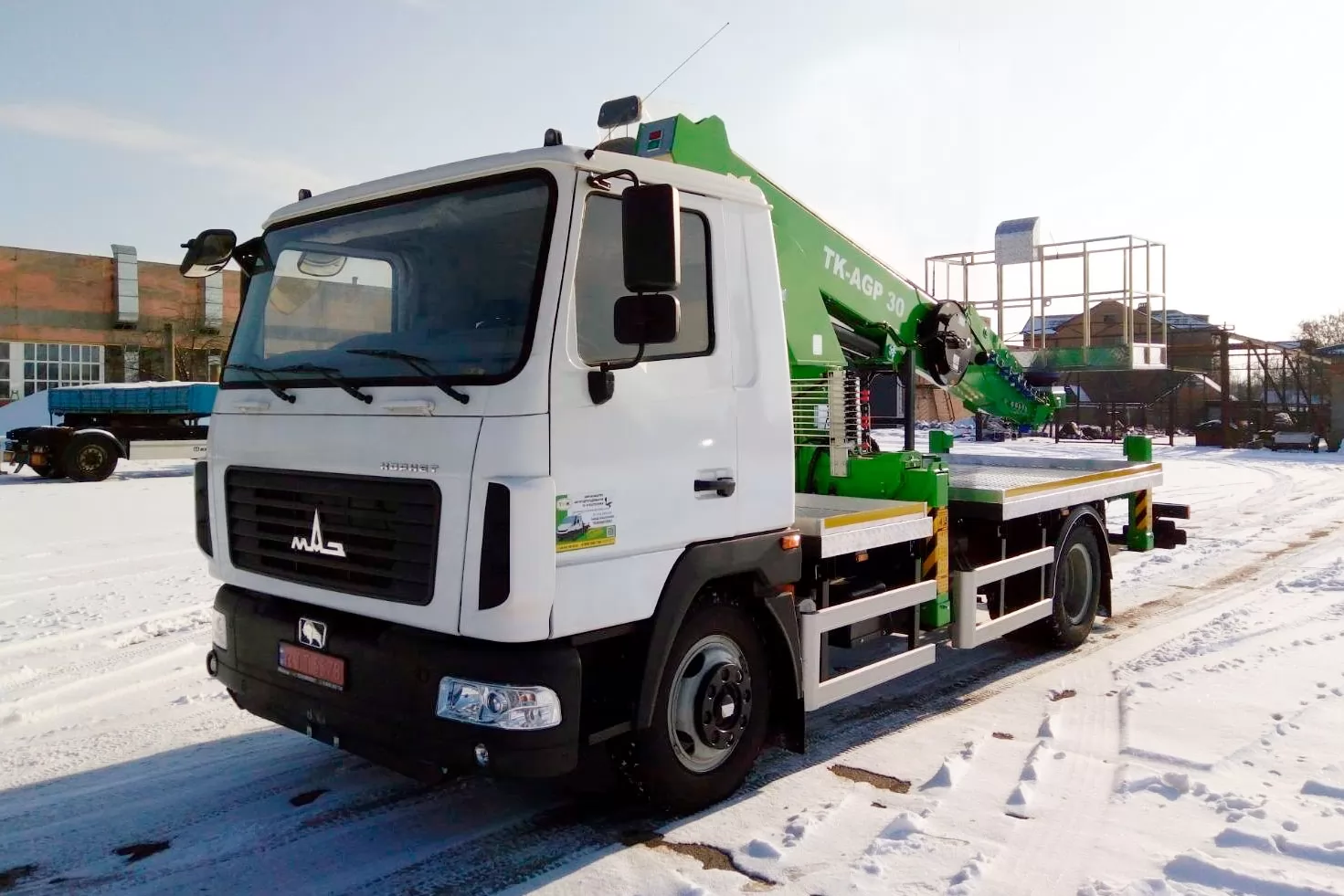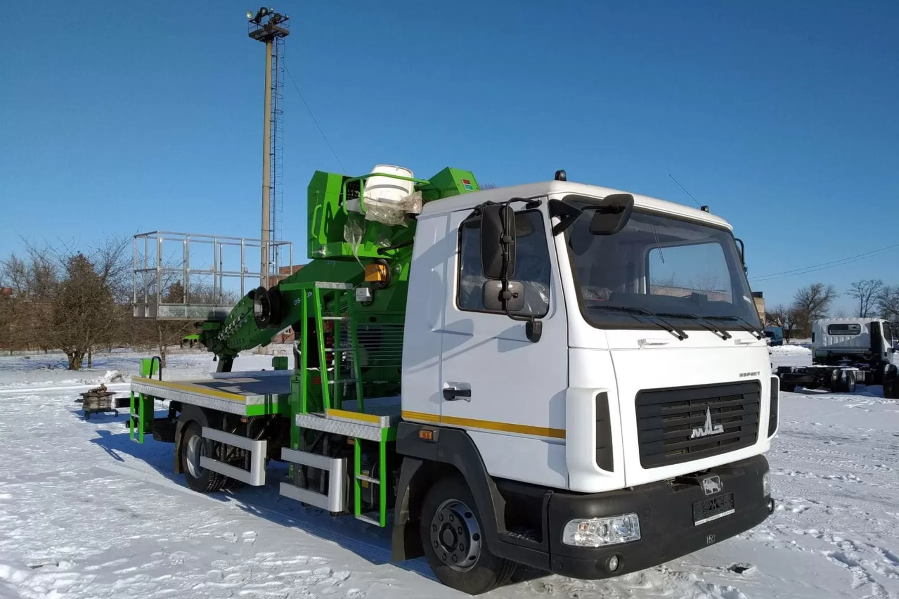 Автогидроподъемники из серии SKYMAN рассчитаны на рабочую высоту до 30 м, допустимая грузоподъемность люльки 300 кг, максимальный вылет 18 м.