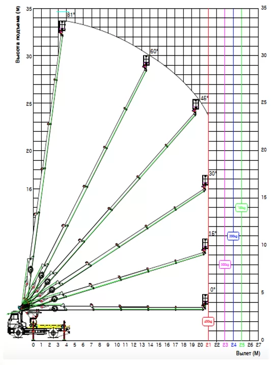 | Модель | Робоча висота, м | Висота до рівня підлоги, м | Горизонтальний виліт, м | В/п робочої корзини, кг |